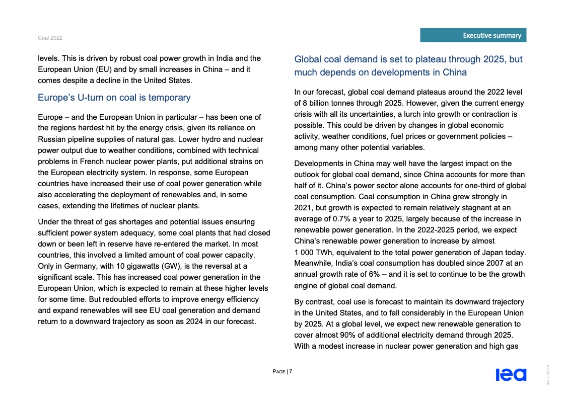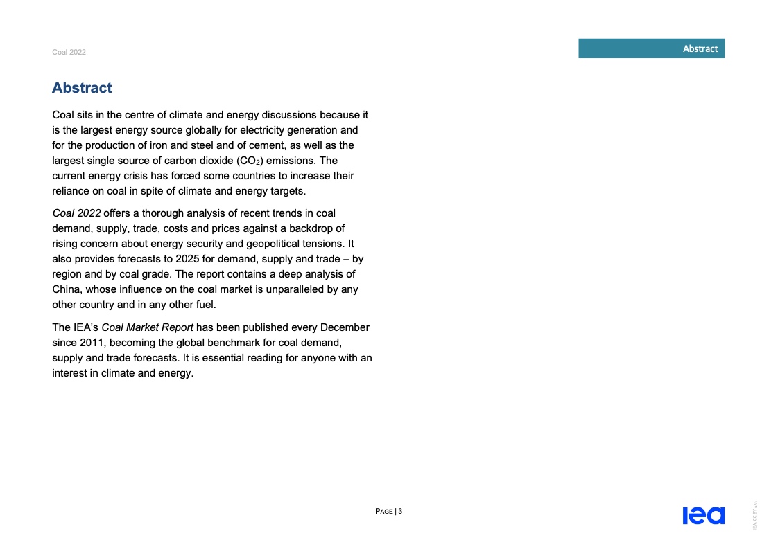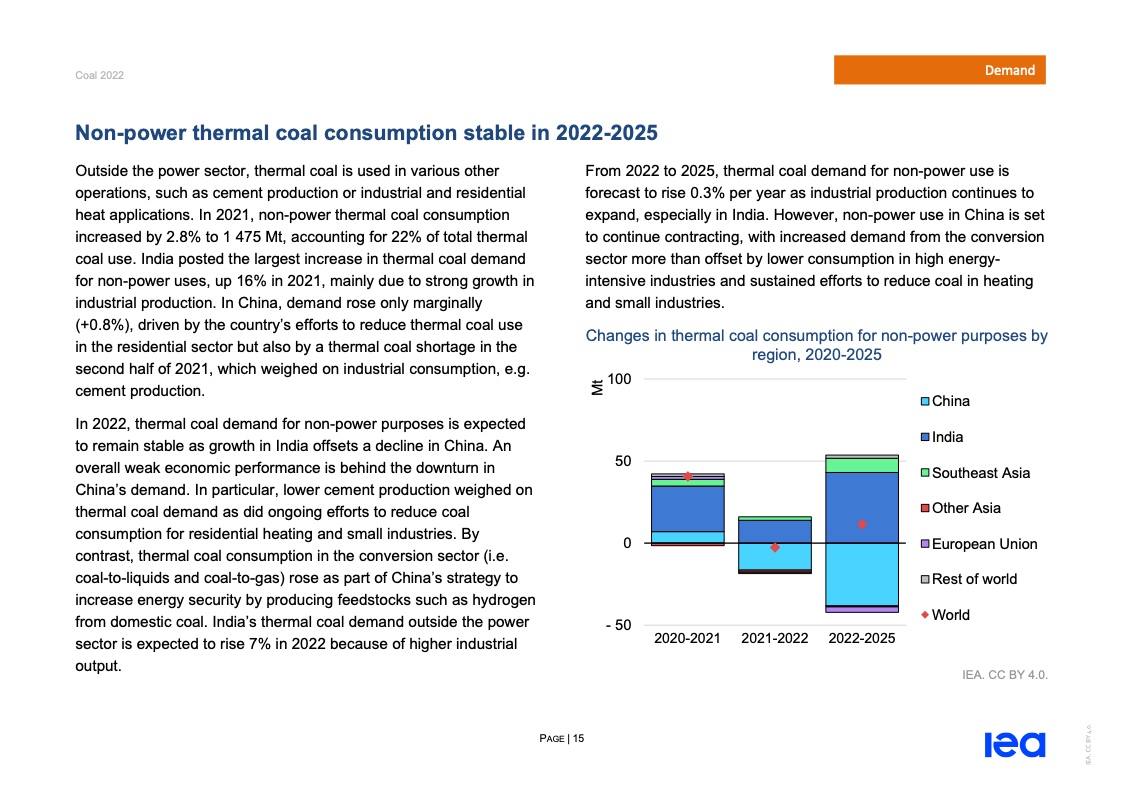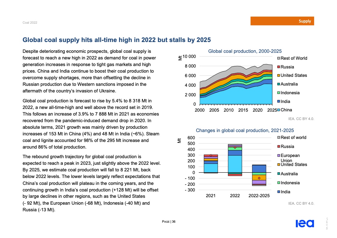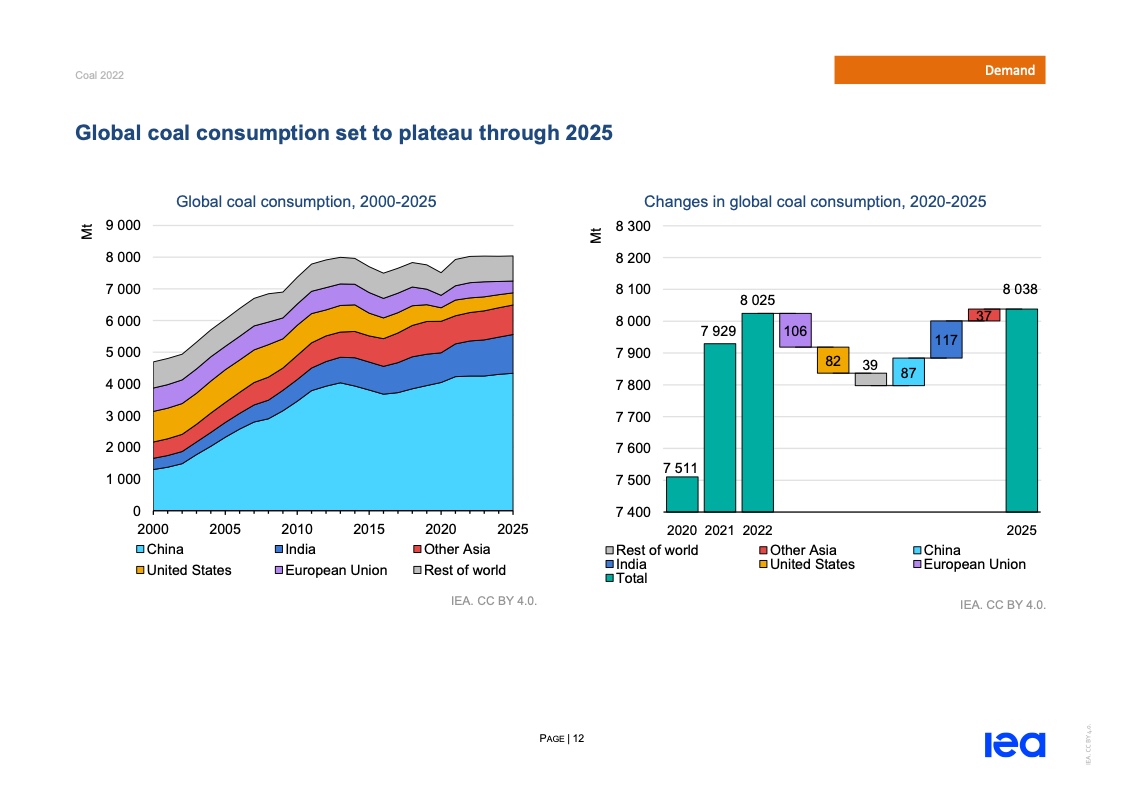 国际能源署(IEA)一份报告指出,2022年全球煤炭消费量将创历史新高。