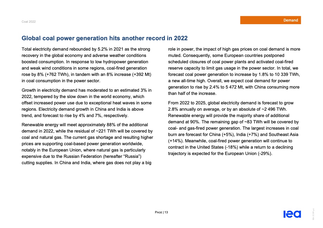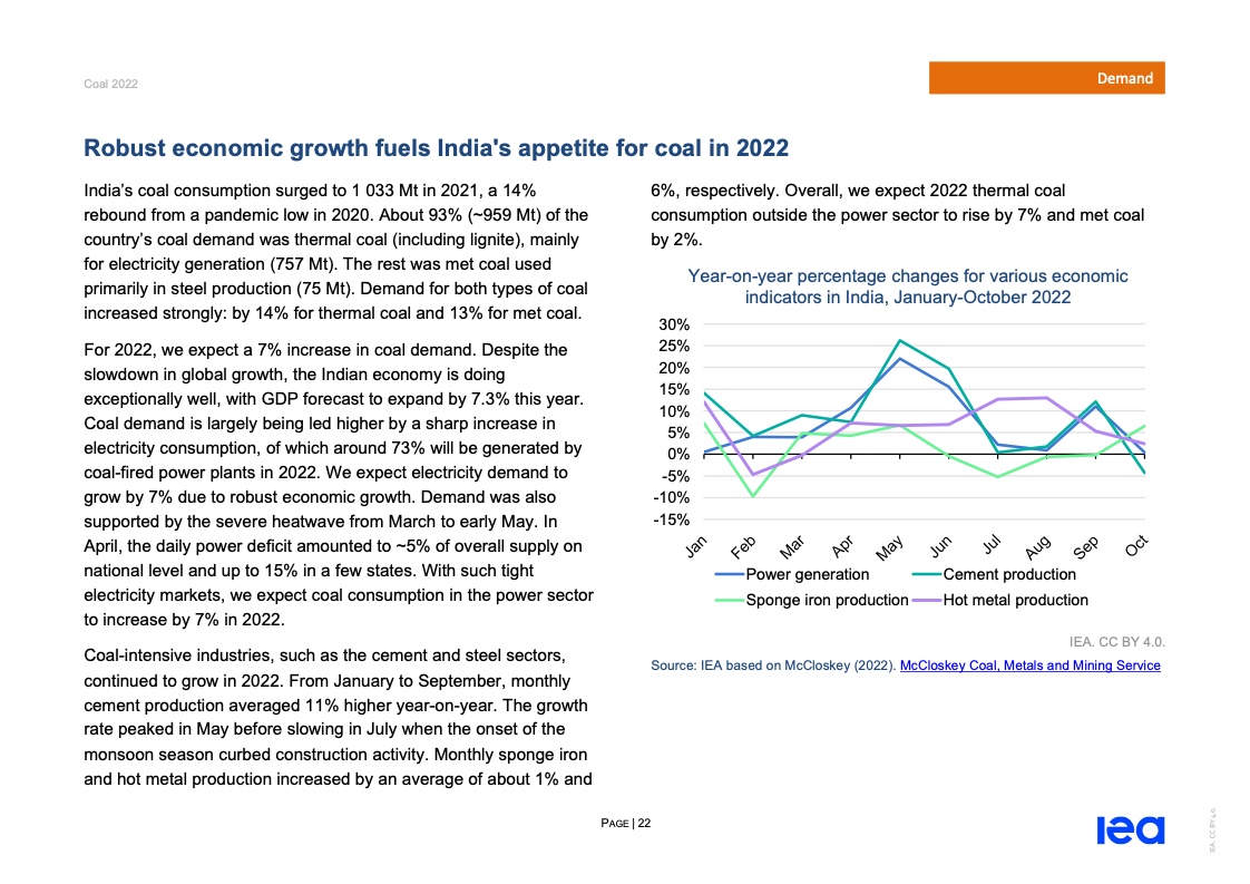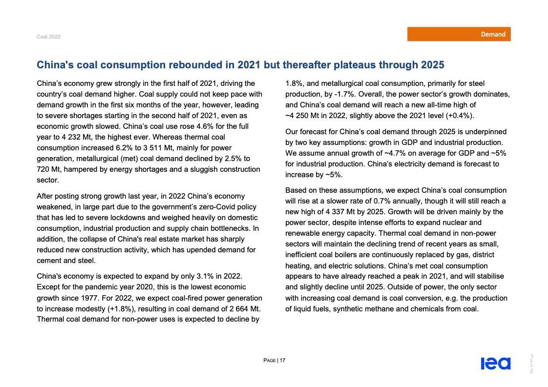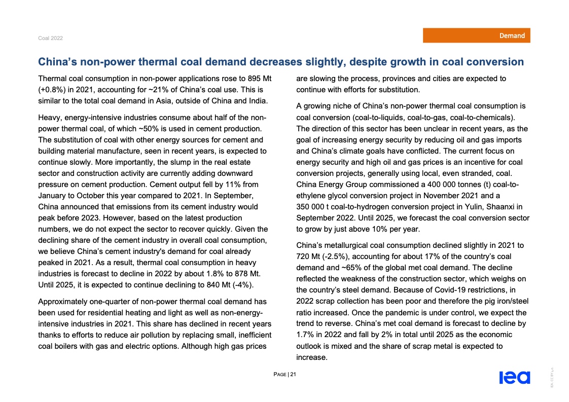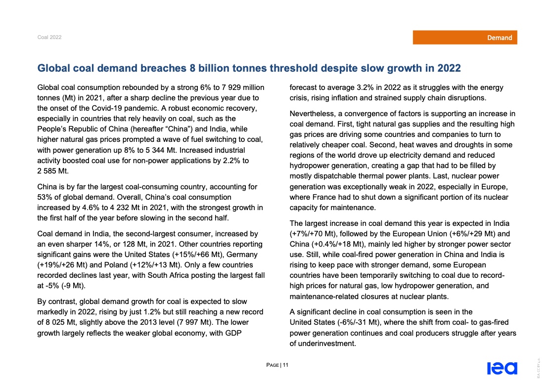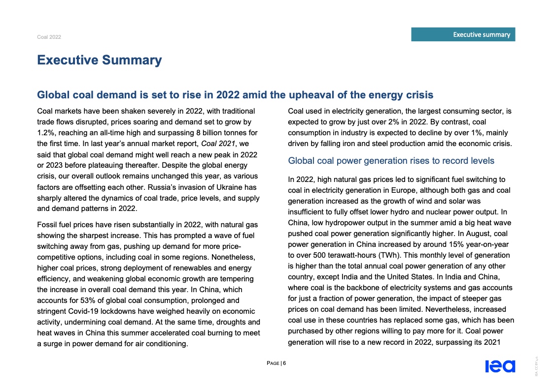 国际能源署(IEA)一份报告指出,2022年全球煤炭消费量将创历史新高。