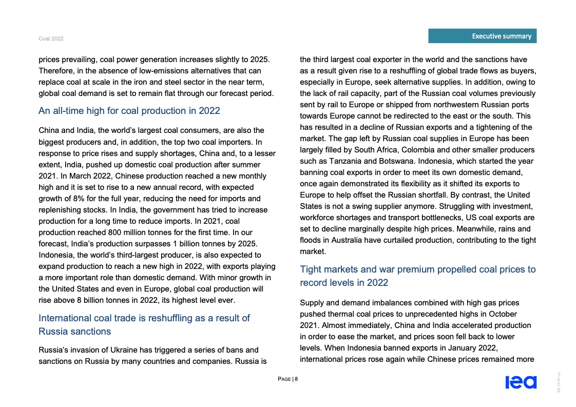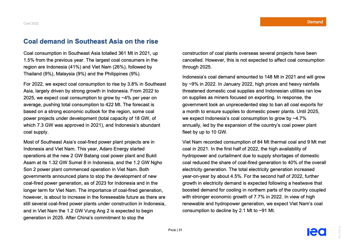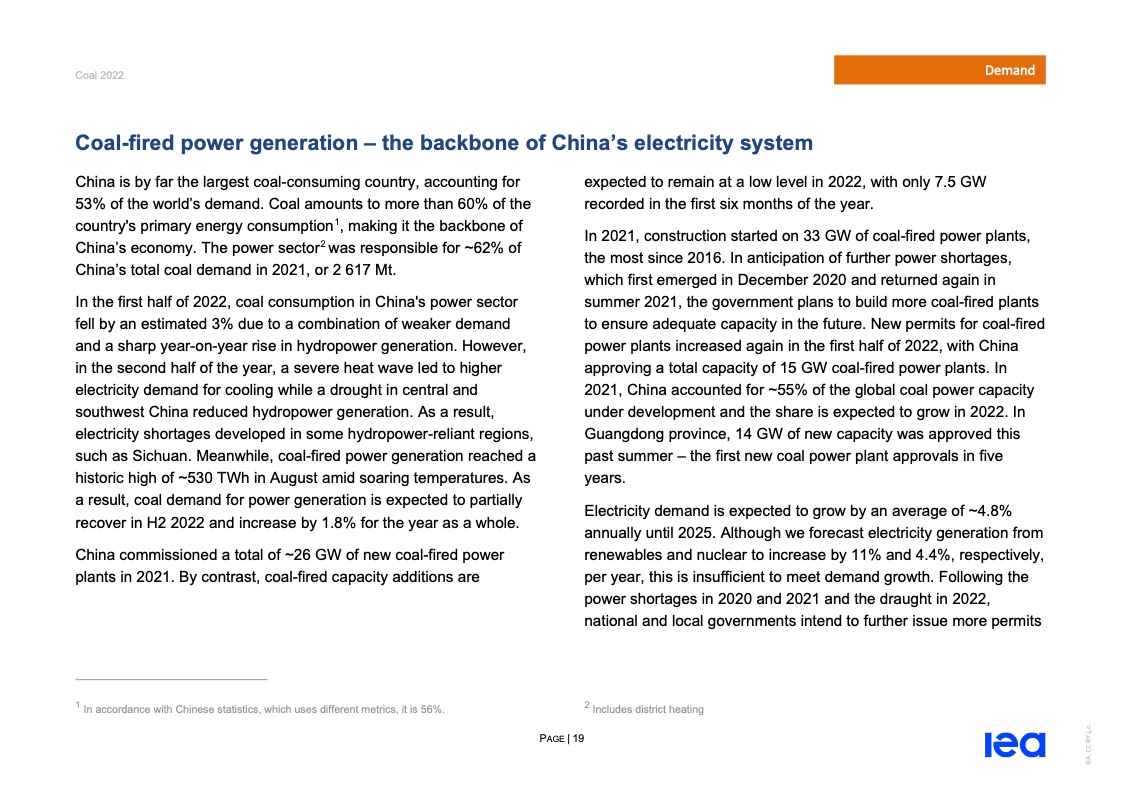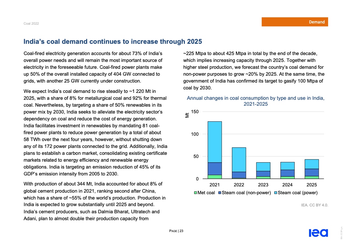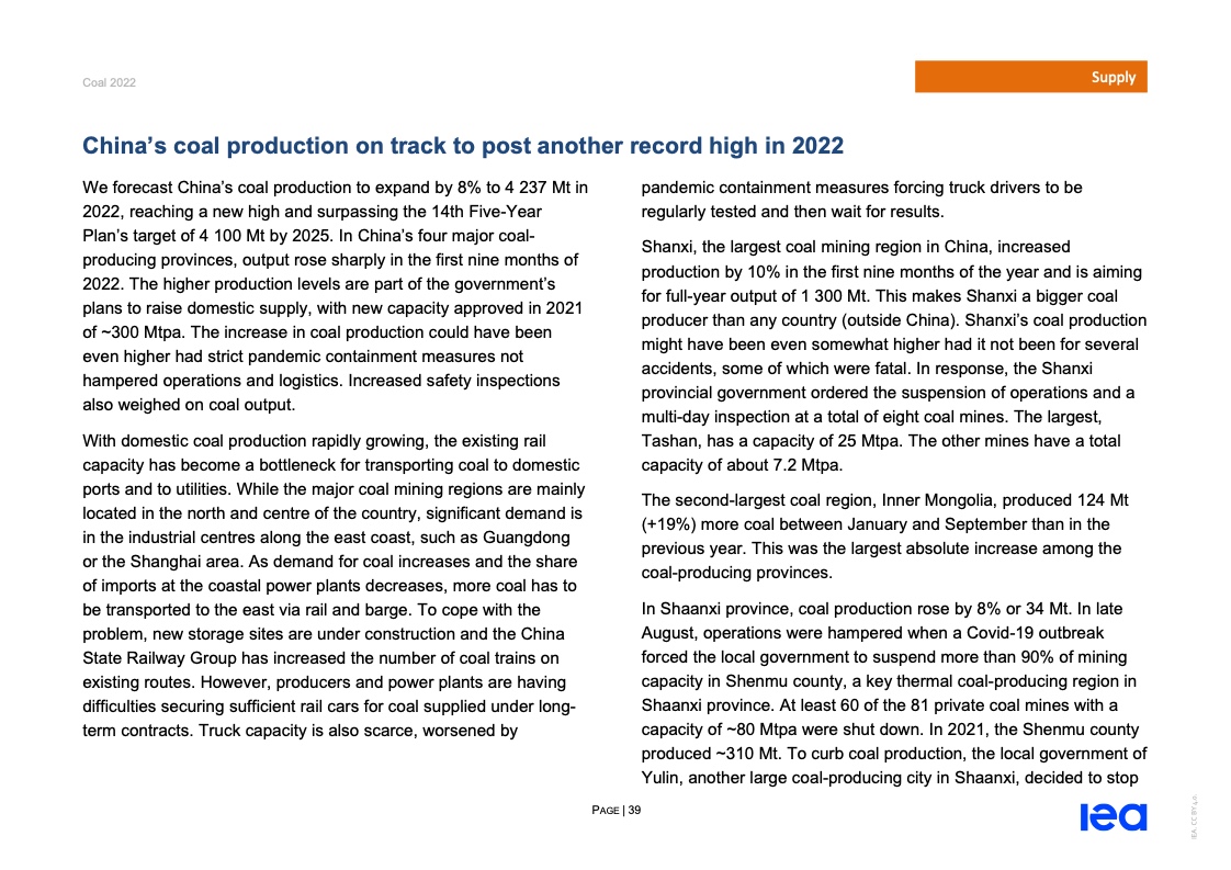 国际能源署(IEA)一份报告指出,2022年全球煤炭消费量将创历史新高。
