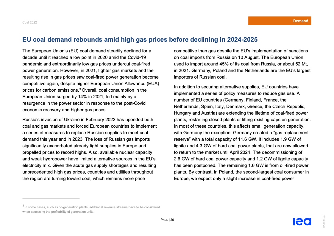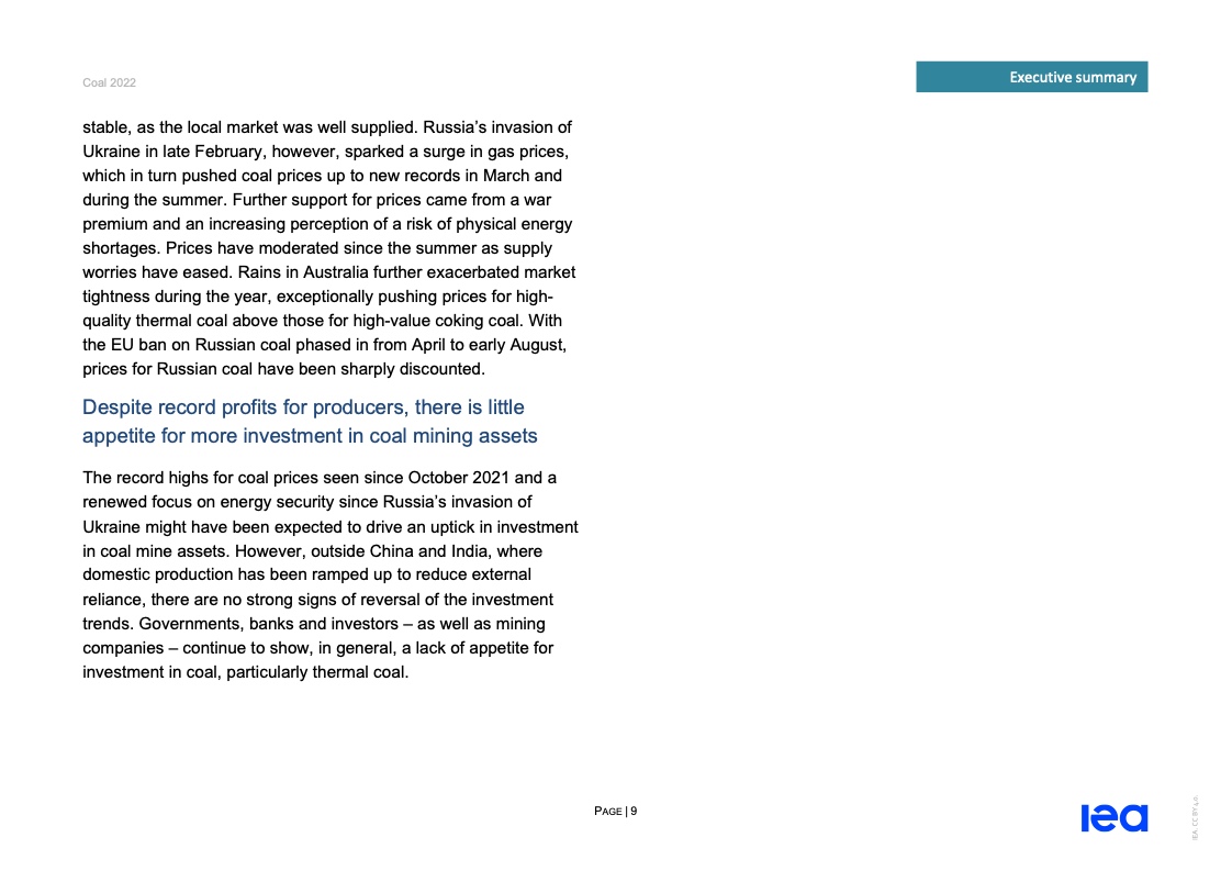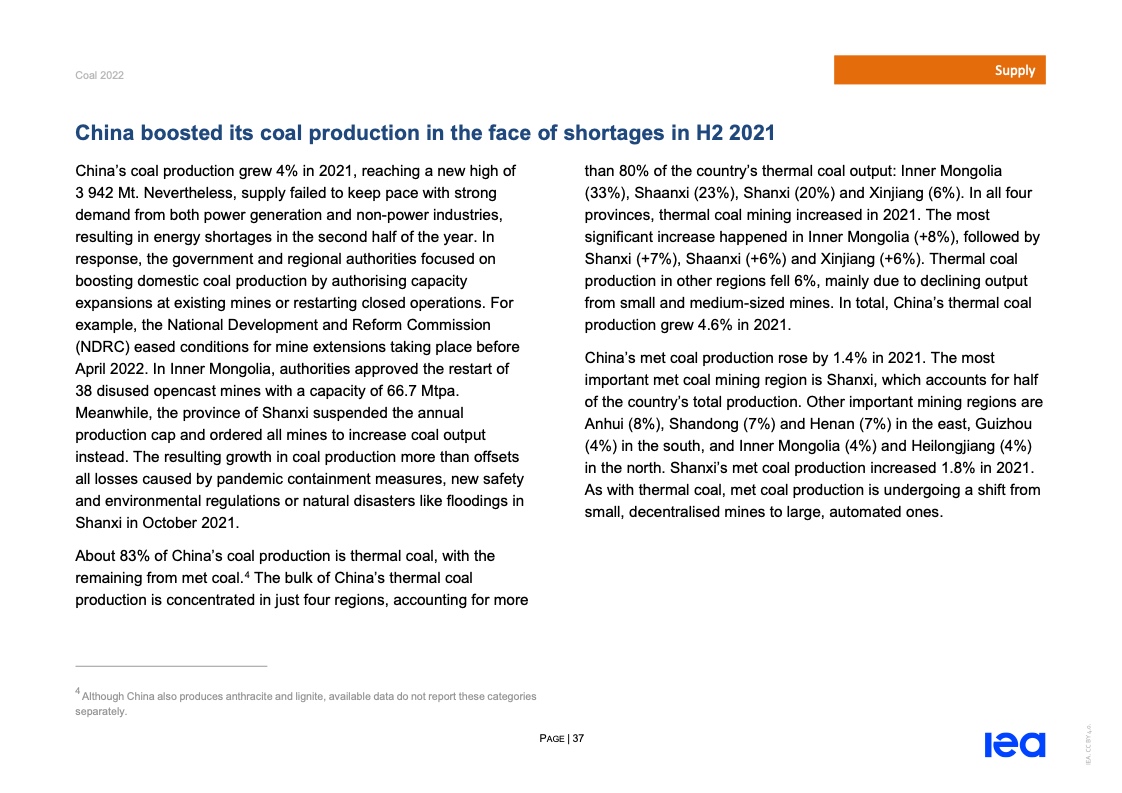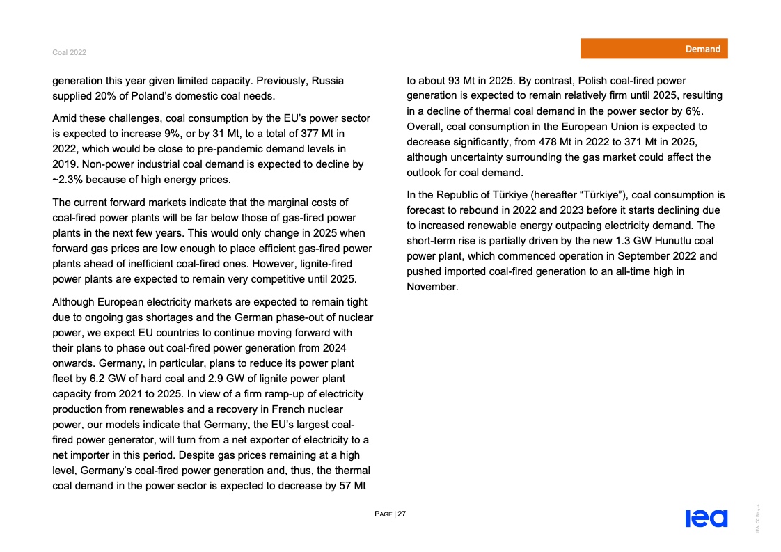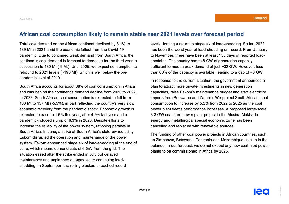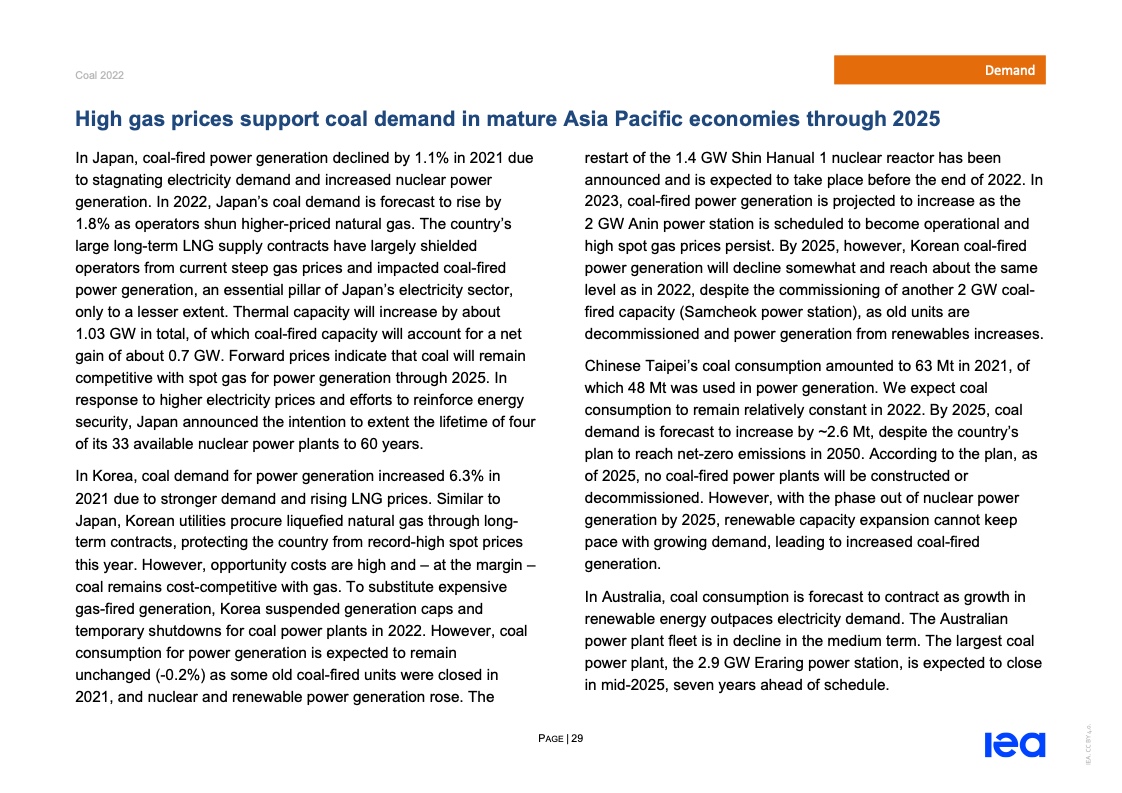 国际能源署(IEA)一份报告指出,2022年全球煤炭消费量将创历史新高。