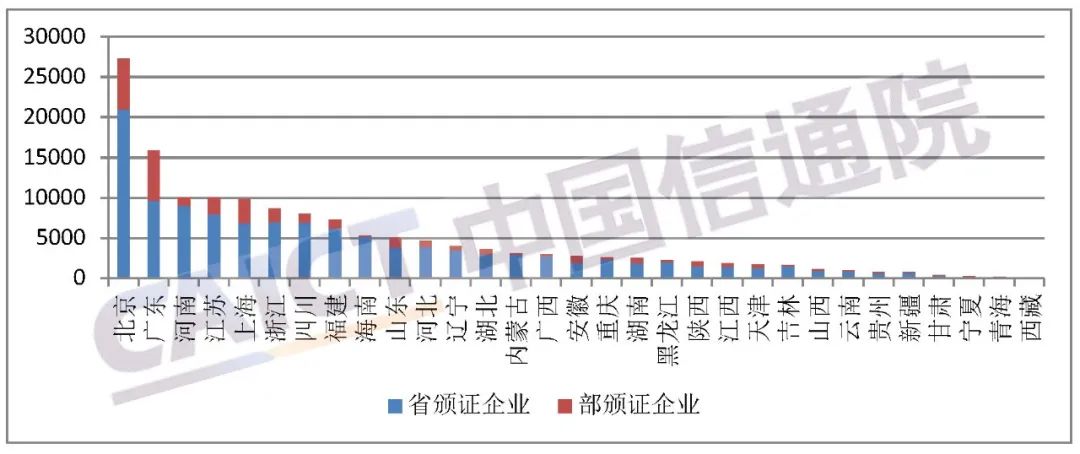 在116908家本地企业中,北京20983家,广东9607家,河南9014,接下来依次是江苏、浙江、上海,上述6地集中了全国52.50%的增值电信企业,西部12省份的增值电信业务经营者占全国的16.41%。