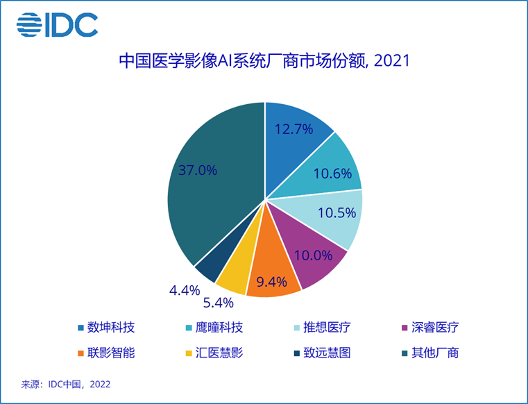 IDC于近日发布了《中国医学影像AI系统市场份额,2021:产品与应用模式正持续创新》,本报告给出了中国医学影像AI主要厂商的市场份额,分析了市场的竞争态势,并对领先厂商在2021 年的市场表现给予了分析评价,可供医疗机构在选择医学影像AI的供应商时进行参考,也可供投资机构,以及供综合型IT厂商、医学影像设备厂商在选择合作伙伴时作为参考。