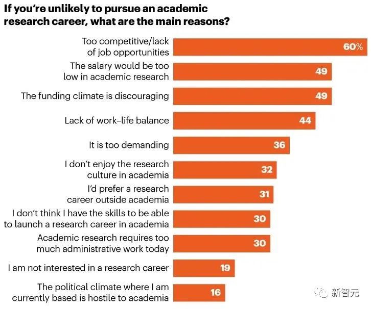 调查显示,硕士生与博士生的职业志向不同。只有不到五分之一的人更愿意在行业内找到一份工作,这与有此意向的 32% 的博士生形成鲜明对比。