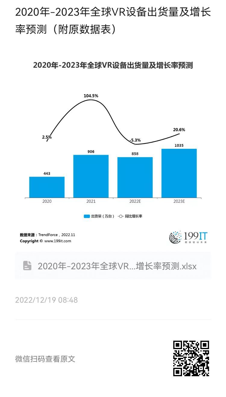 - 2022年-2023年全球VR设备出货量(附原数据表)