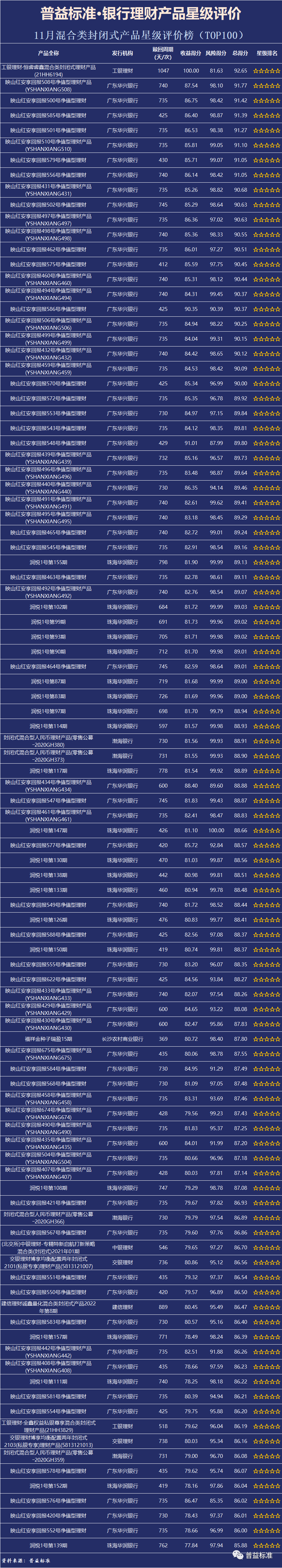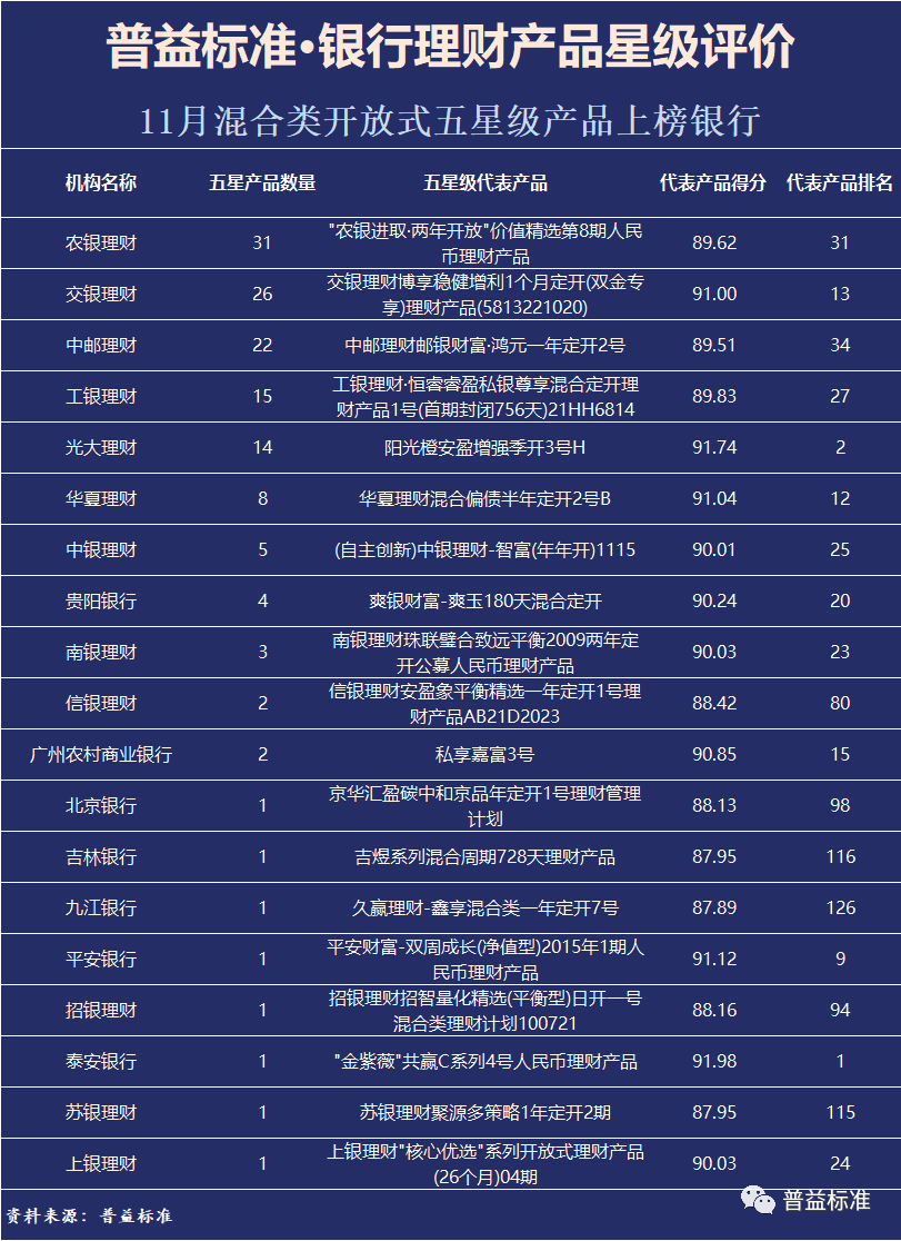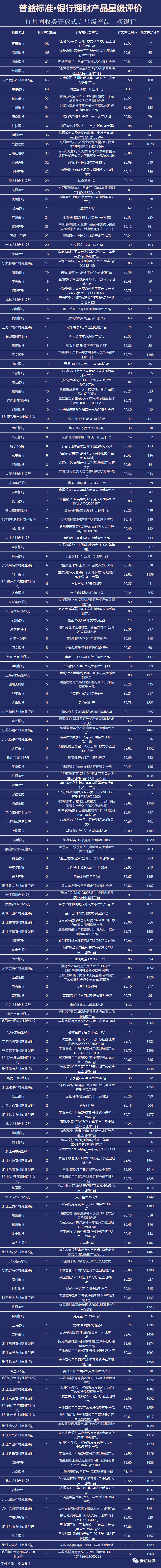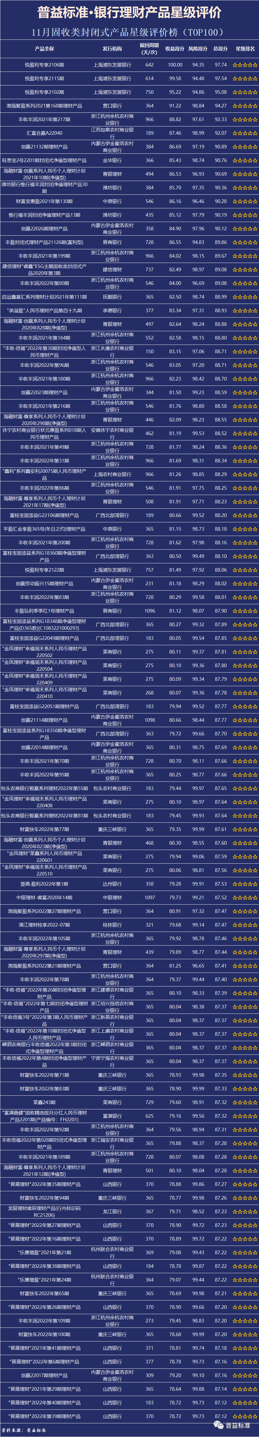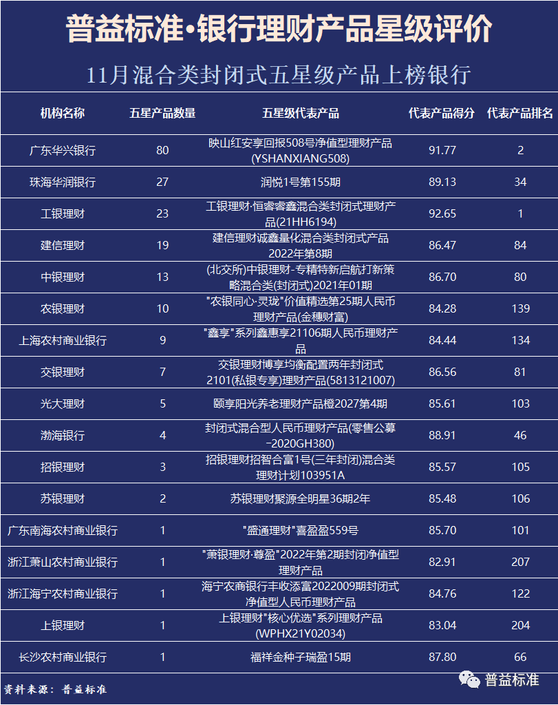 详细榜单情况如下:11月固收类封闭式五星级产品上榜银行