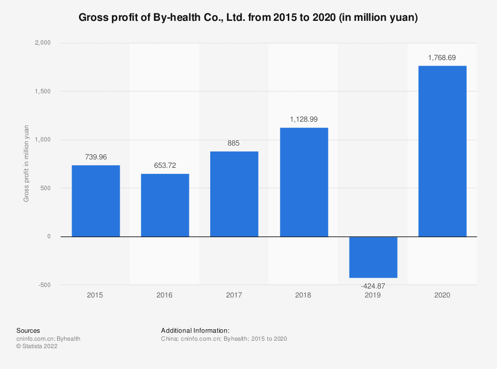 2020年,中国营养和膳食补充剂制造商汤臣倍健公布的年毛利润约为17.7亿元。在2019年录得近4.25亿元亏损后,由于冠状病毒的爆发,毛利在2020年飙升。