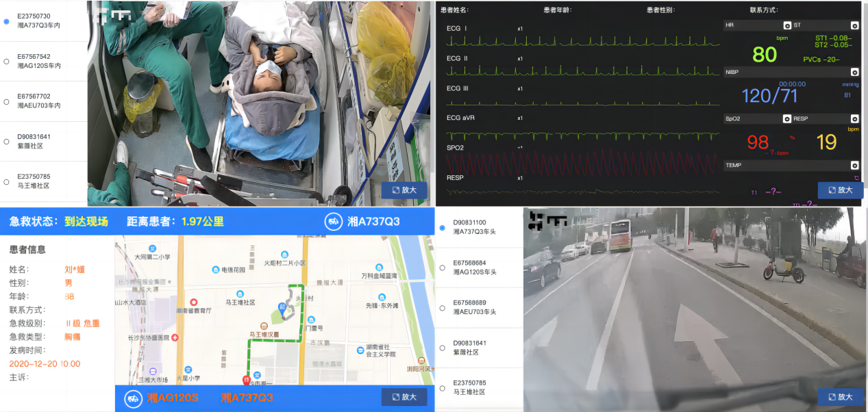 该平台纵向可对接省、县级 120 指挥平台,横向可与郴州市应急指挥中心、110、119、12345 等平台互联互通,上云后的救护车,在车内即可实现医疗数据收集处理,汇集、分析救护车上的 GPS 车载终端、监护仪、除颤仪、呼吸机等数据,并直接上传到指挥中心和医院急诊科室,抢占医疗急救黄金时间,极大提高了郴州市院前急救能力和应对突发公共事件紧急医疗救援的水平。