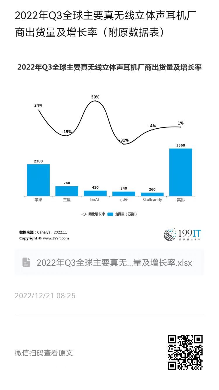 - 2021年Q4全球主要真无线立体声耳机厂商出货量及增长率(附原数据表)