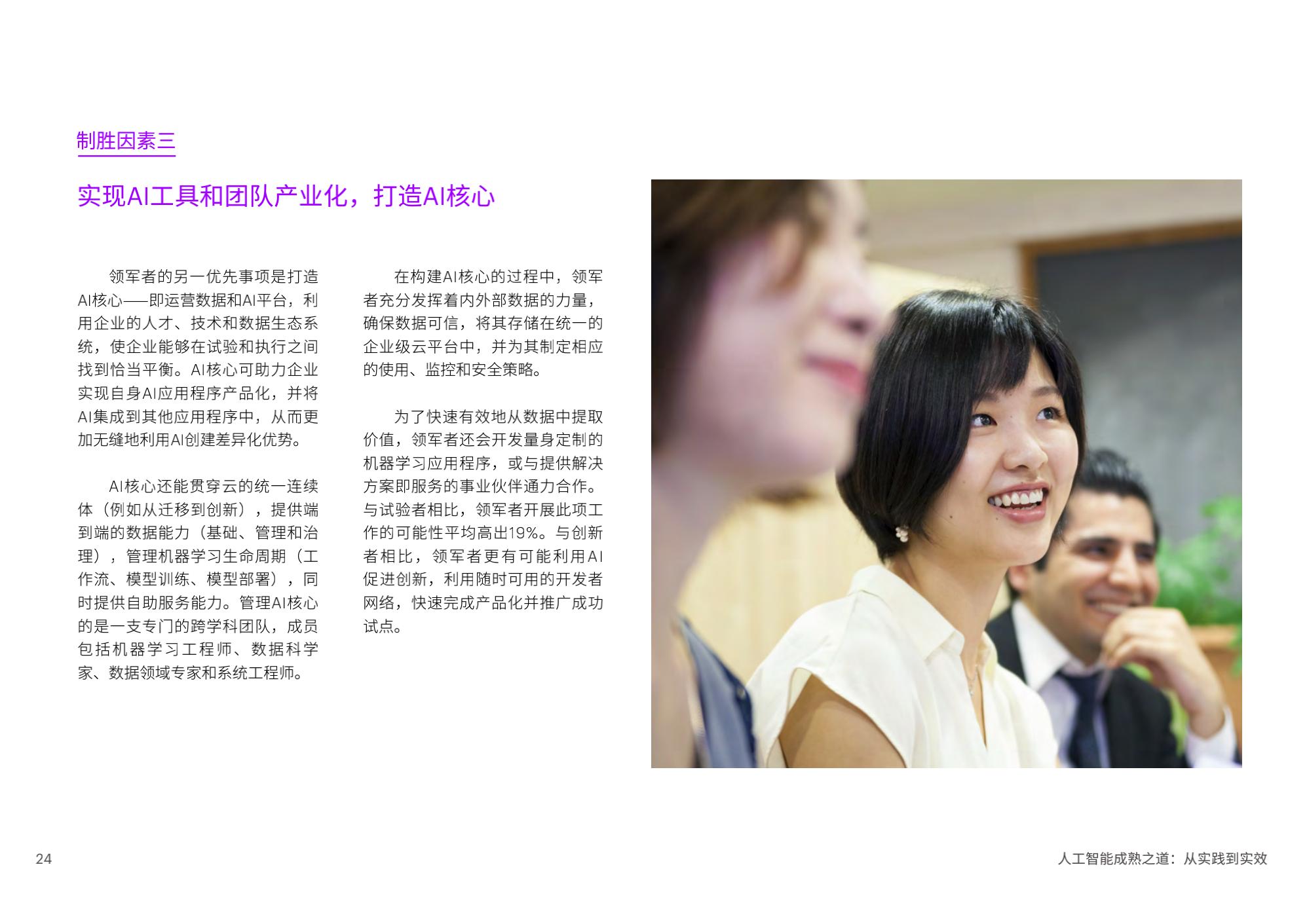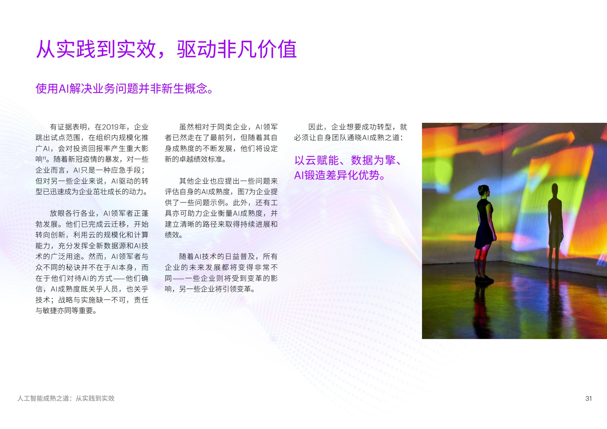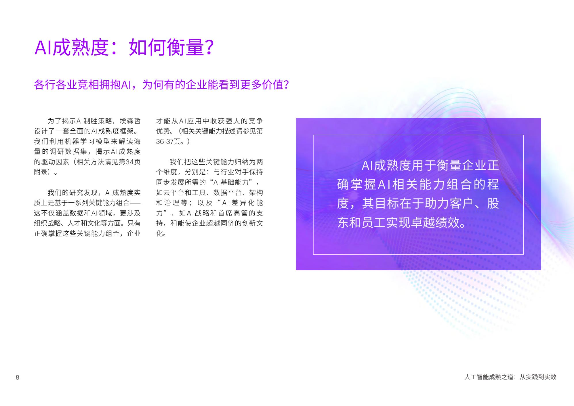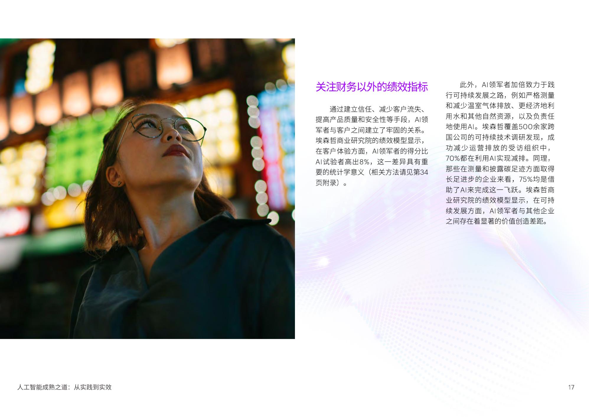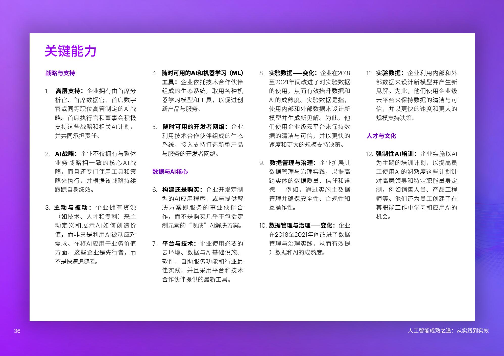 陈泽奇补充道:“对于企业来说,规模化应用AI是一门技术课题,也是一门管理学问。在加速提升成熟度的过程中,企业管理者需要考虑短期和长期投入,将AI更好地融入企业整体战略重点,以人才为基石,打造AI核心能力,一以贯之地坚持包容和可持续,方能发挥AI开创、启发和引领的实际作用。”