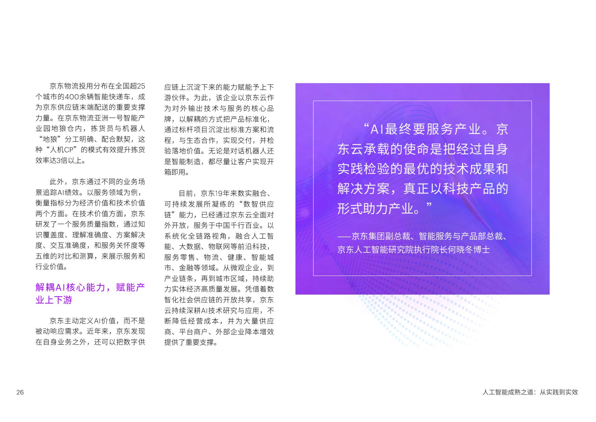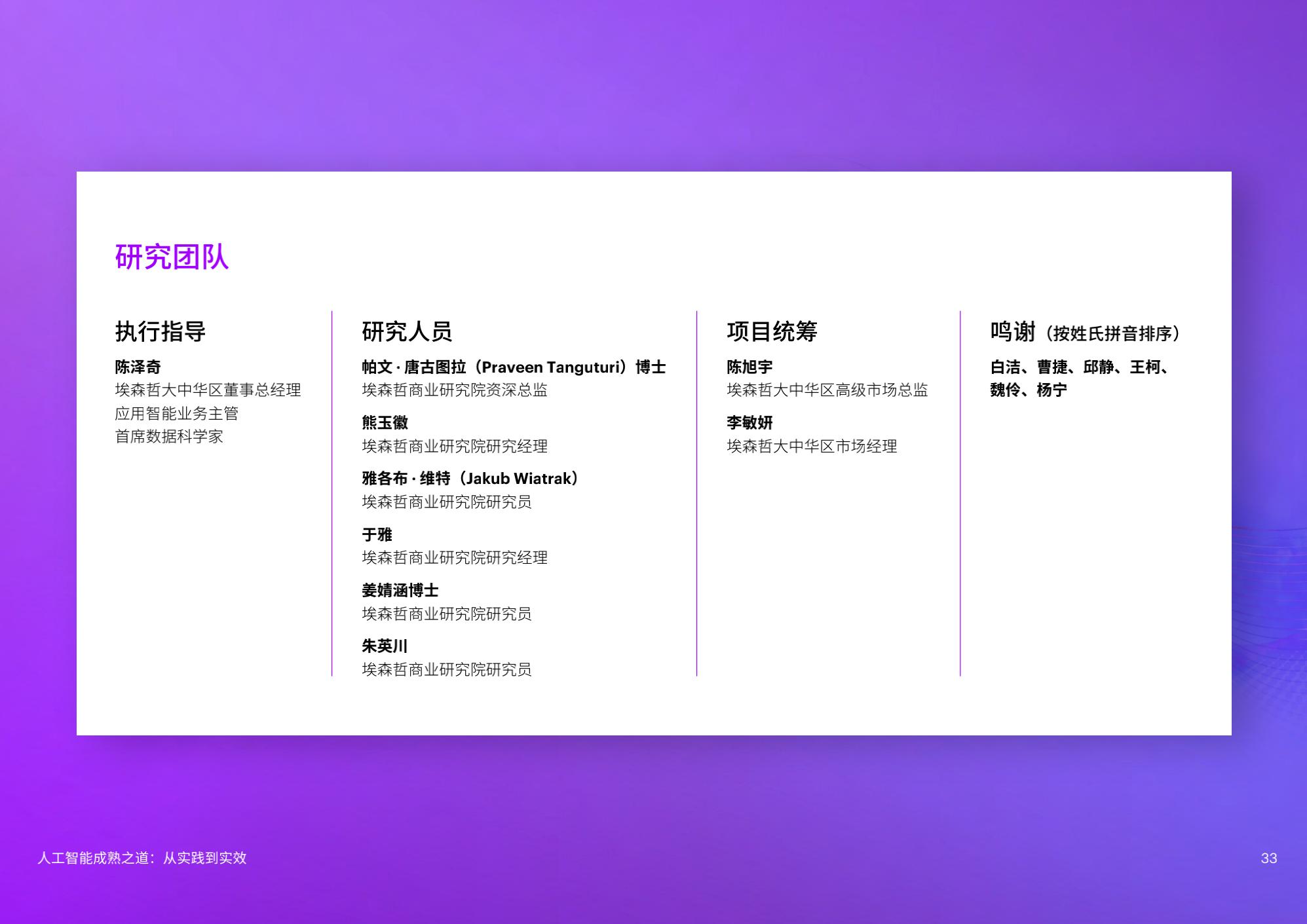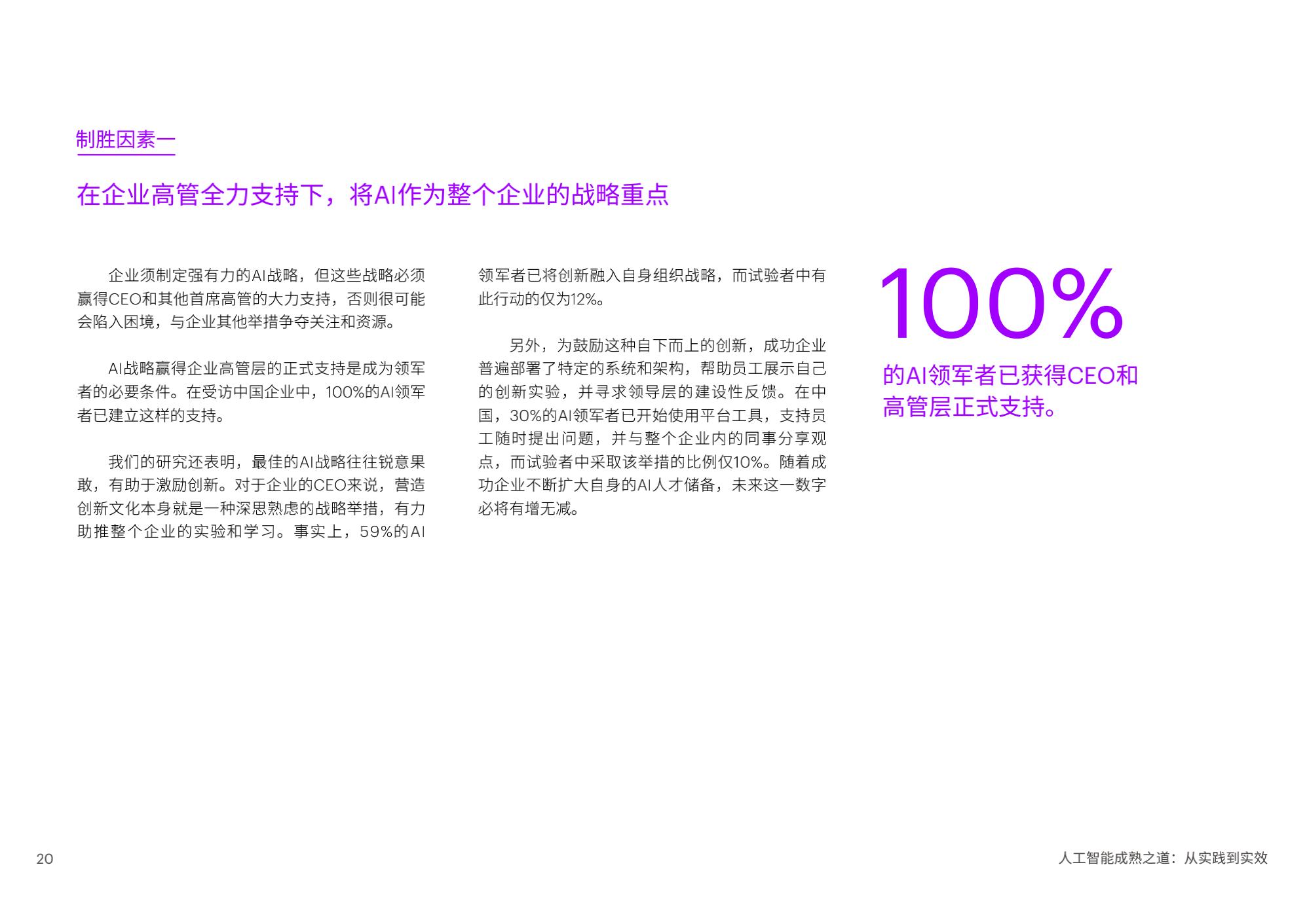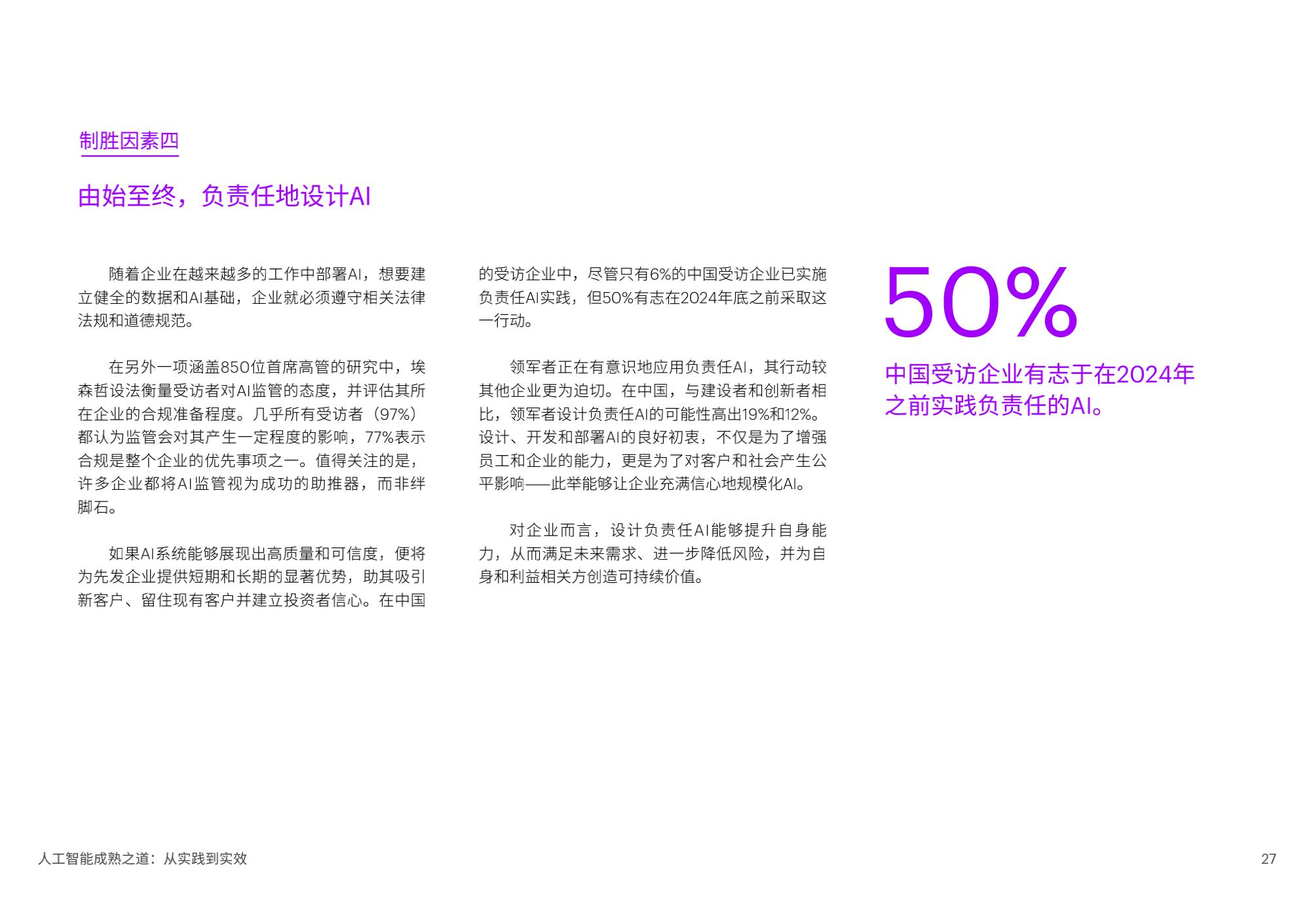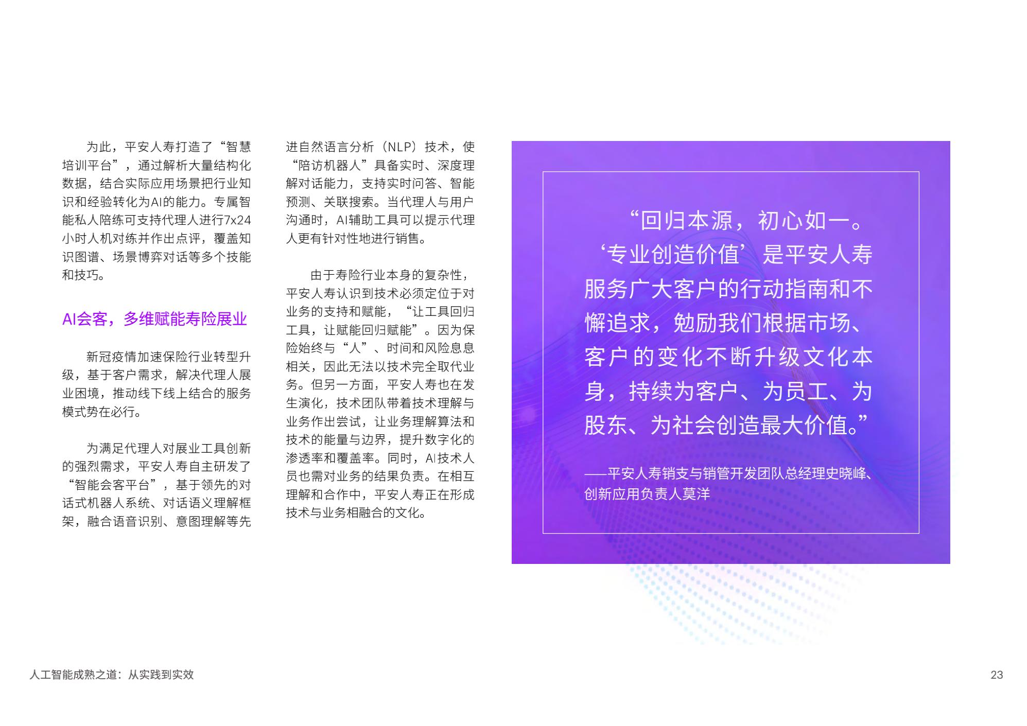 陈泽奇补充道:“对于企业来说,规模化应用AI是一门技术课题,也是一门管理学问。在加速提升成熟度的过程中,企业管理者需要考虑短期和长期投入,将AI更好地融入企业整体战略重点,以人才为基石,打造AI核心能力,一以贯之地坚持包容和可持续,方能发挥AI开创、启发和引领的实际作用。”
