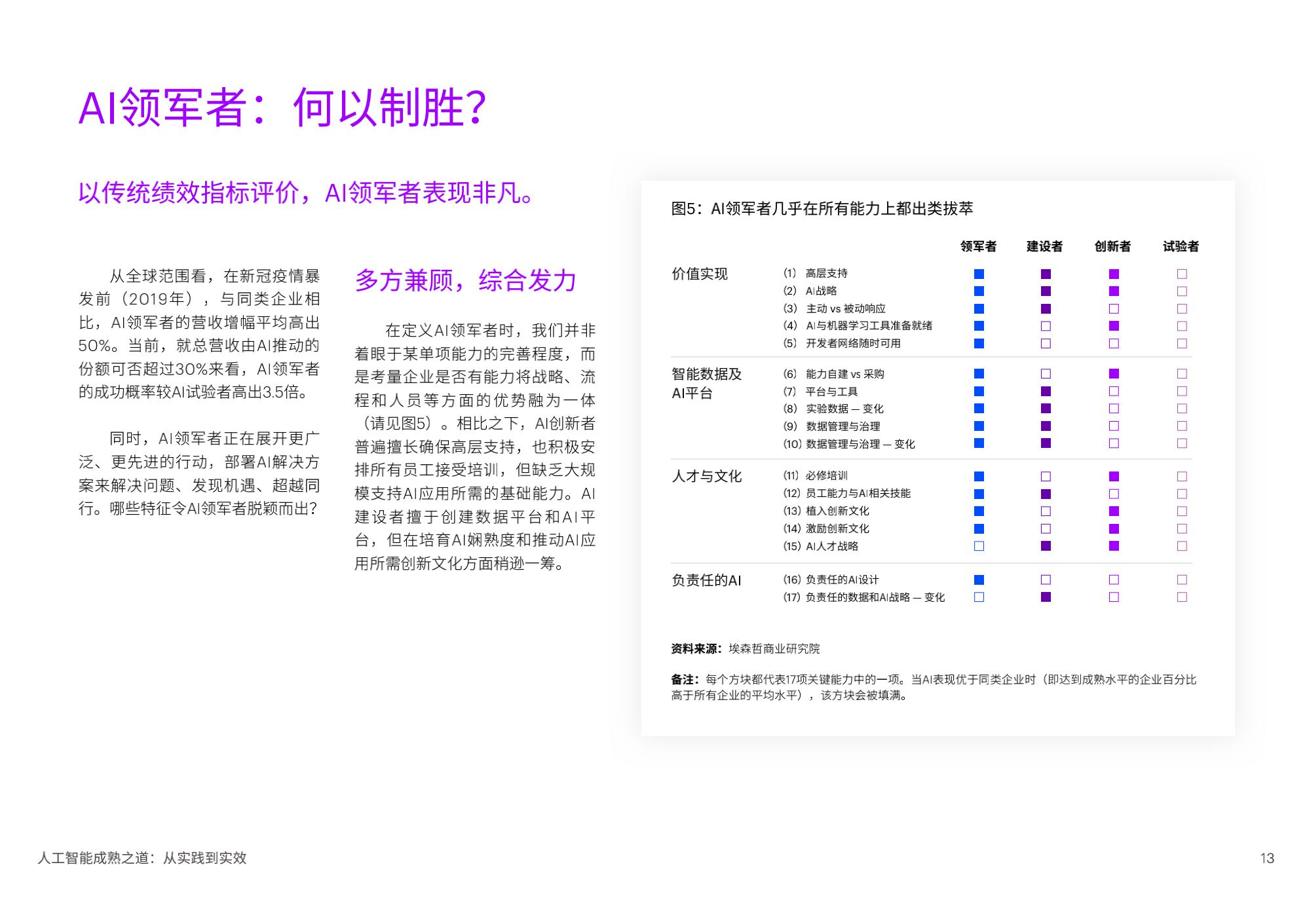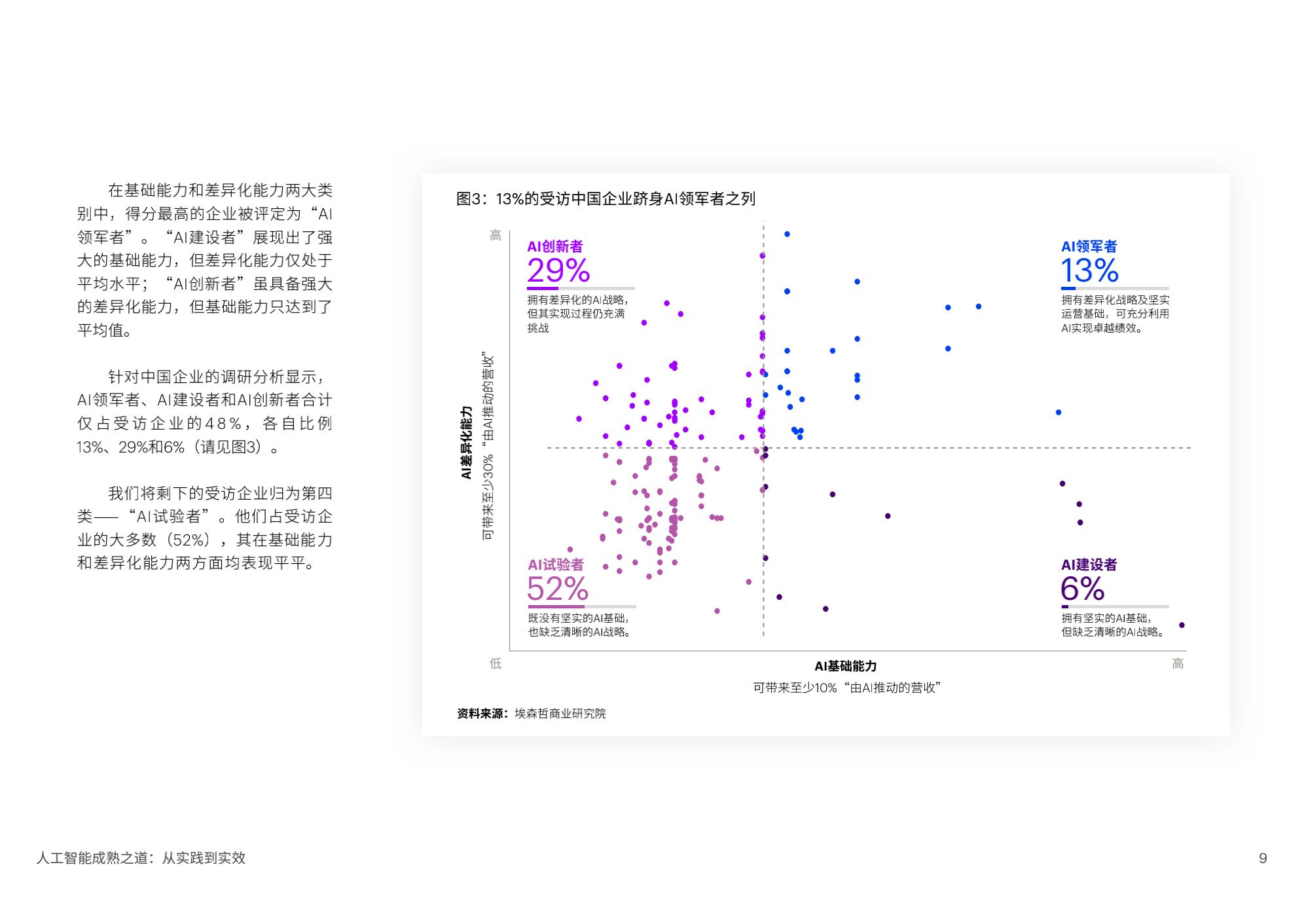 埃森哲在近期发布的“人工智能成熟度评估”中指出,大部分中国企业仍处于应用人工智能(以下简称AI)的试验阶段,企业需要加大AI规模化应用力度,从而推动企业持续转型和全面重塑。这是埃森哲首次发布人工智能成熟度评估框架。