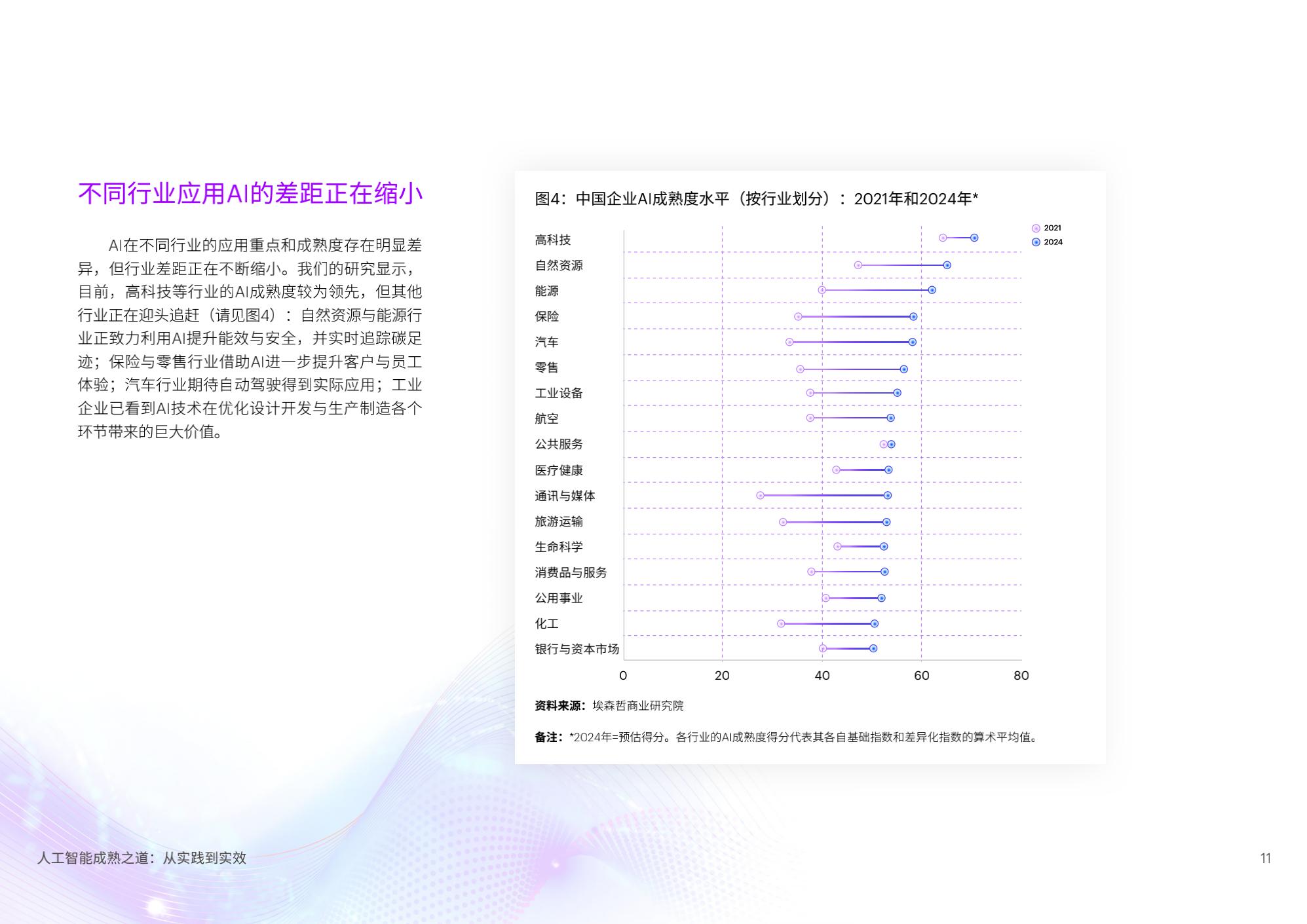 埃森哲大中华区董事总经理、应用智能业务主管兼首席数据科学家陈泽奇表示:“过去几年,随着数字化转型的窗口期不断压缩, 企业规模化应用AI的外部和内部驱动力日渐增强,提升AI成熟度将成为中国企业现代化道路上的必修课。我们坚信,将有更多的中国企业在数据和AI的推动下持续转型,推进企业全面重塑,提升全要素生产率,驱动经济高质量发展。”