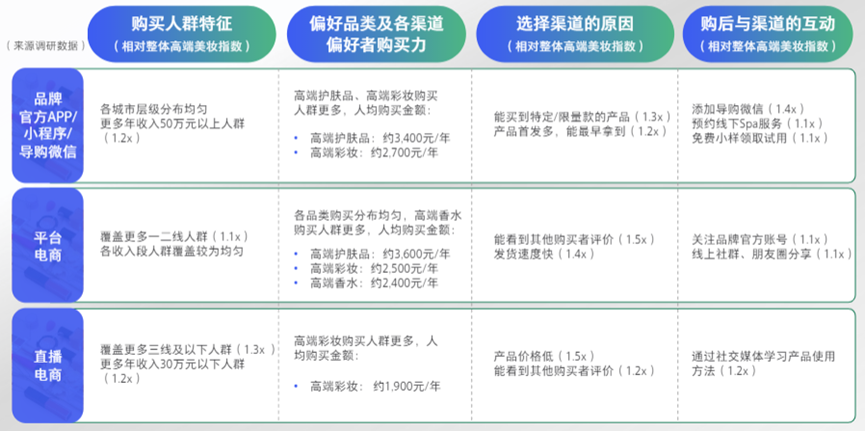 不同渠道继而也吸引了不同客群,影响其决策特征。