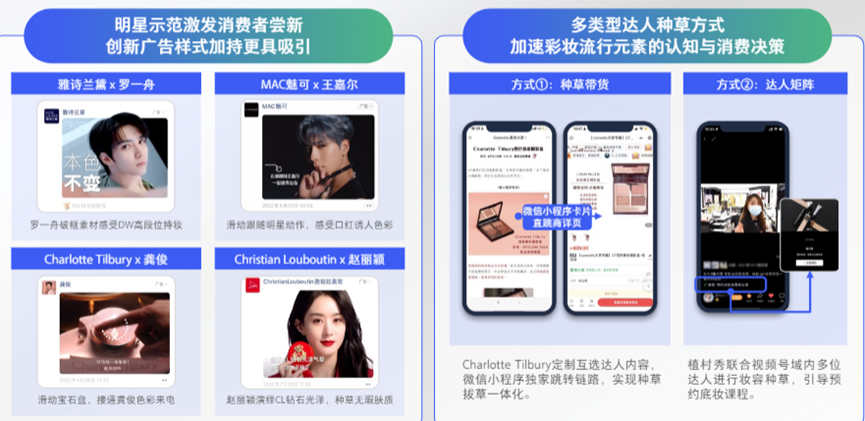 第二,高端彩妆是一个情绪性大于功能性的品类,明星代言+达人种草+直播带货的组合拳仍然有效,但是产品要符合明星人设特点/达人种草内容要有趣/直播带货要针对性讲解产品用法,其核心在于缩短消费者决策链路。