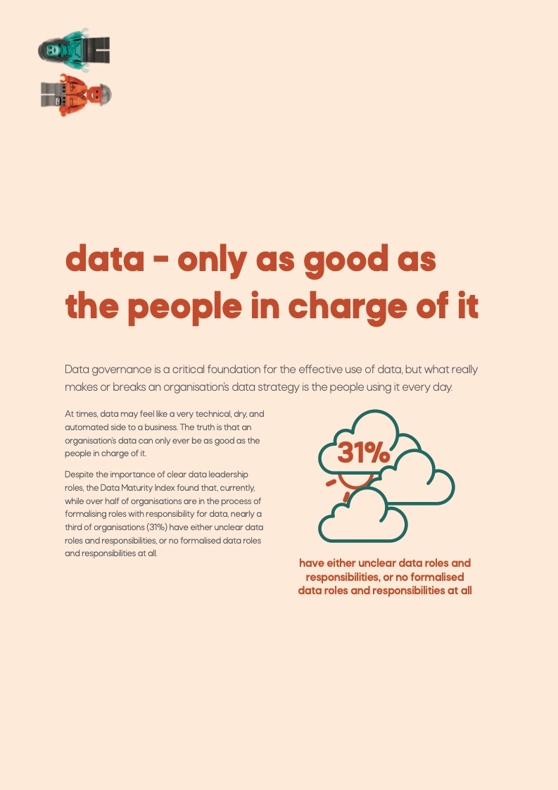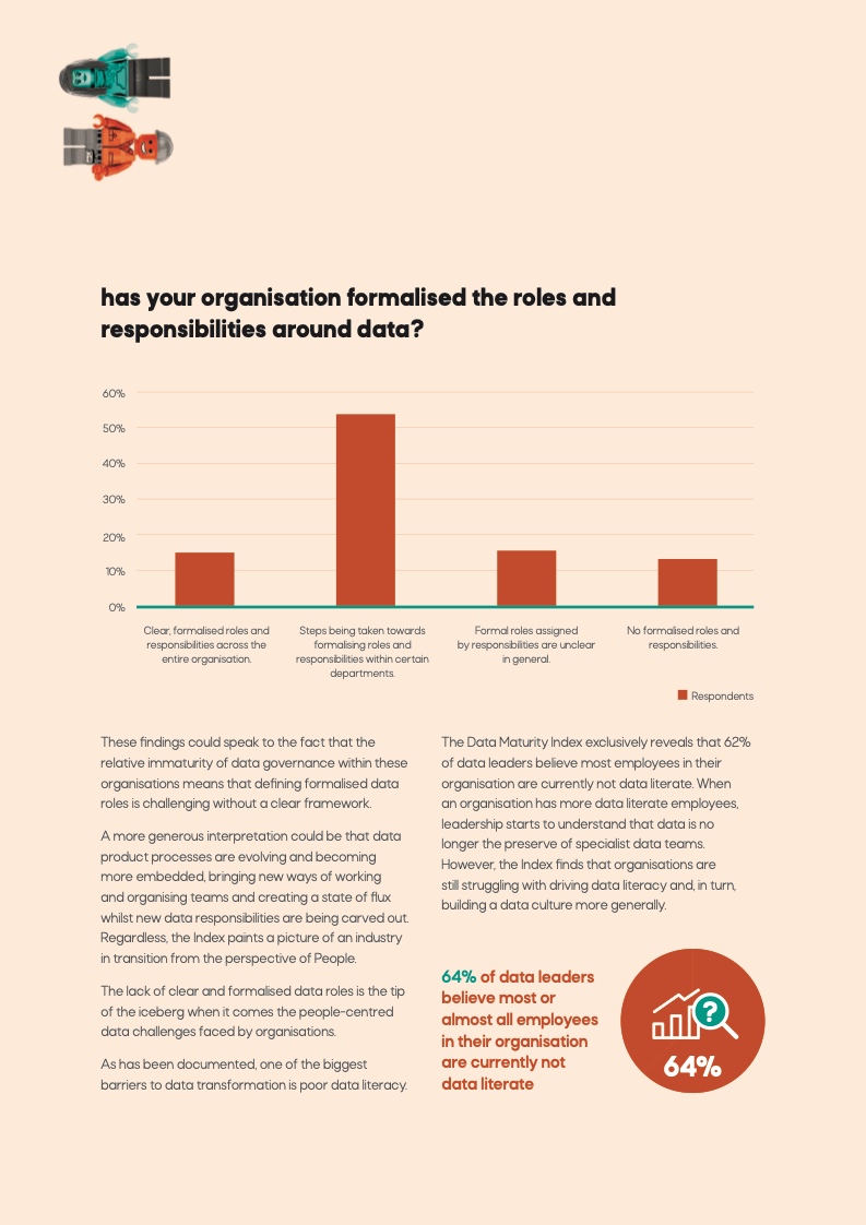研究表明,三分之一的企业或者数据角色和职责不明确,或者根本没有正式的数据角色和职责。这是一个大问题,因为确立数据领导角色是提高企业内部数据素养的重要组成部分。