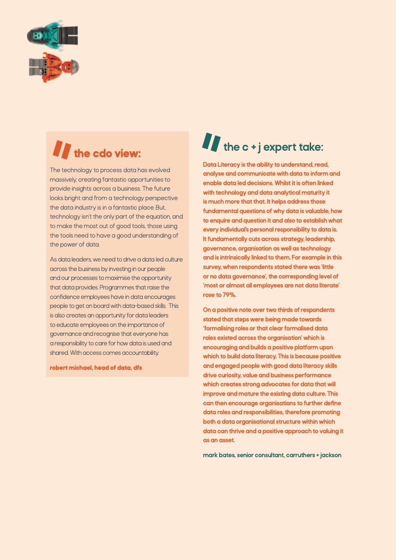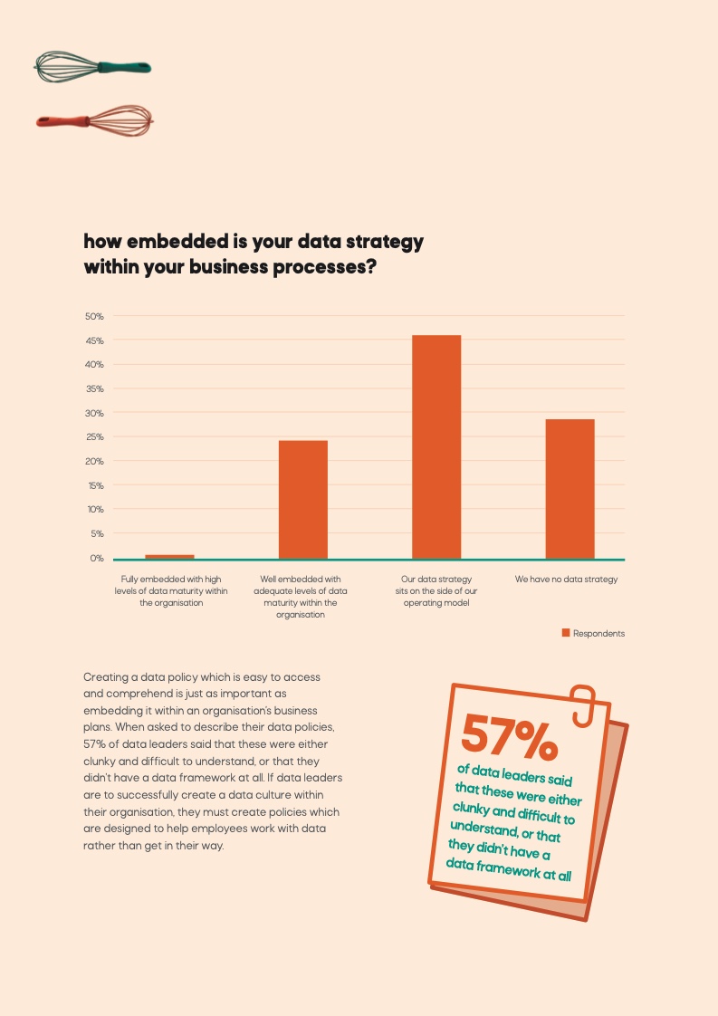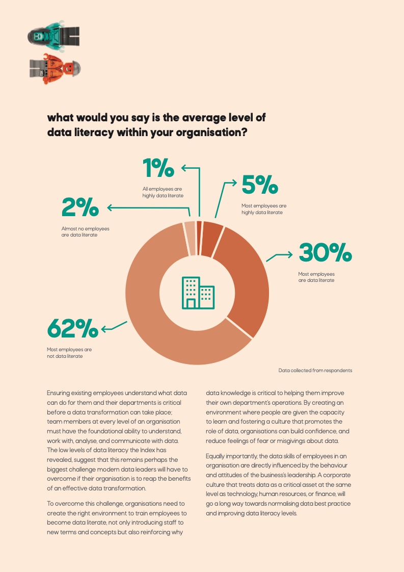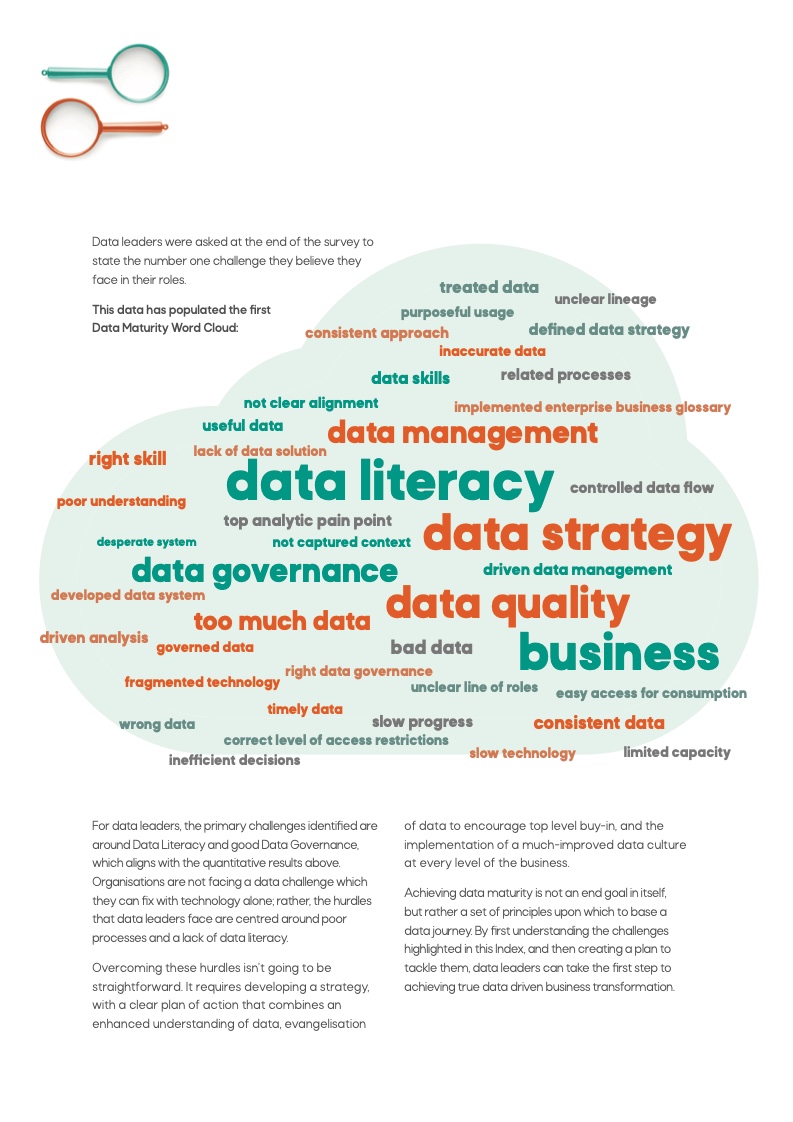 拥有更多懂数据的员工可以让企业领导层明白,数据并不是专业团队的专利,因此更有可能投资于数据转换。问题是,被调查的这些公司中,很少有数据成熟度达到这一水平,“这意味着企业仍需要努力提高数据素养,进而更广泛地构建数据文化。”