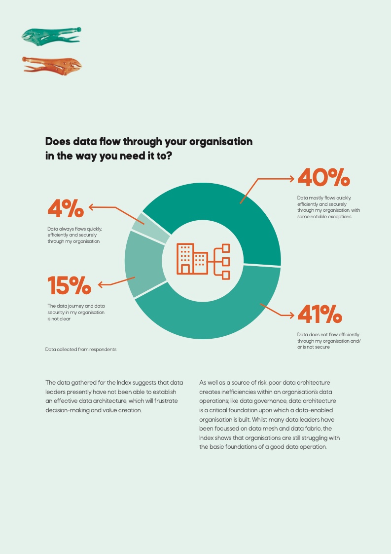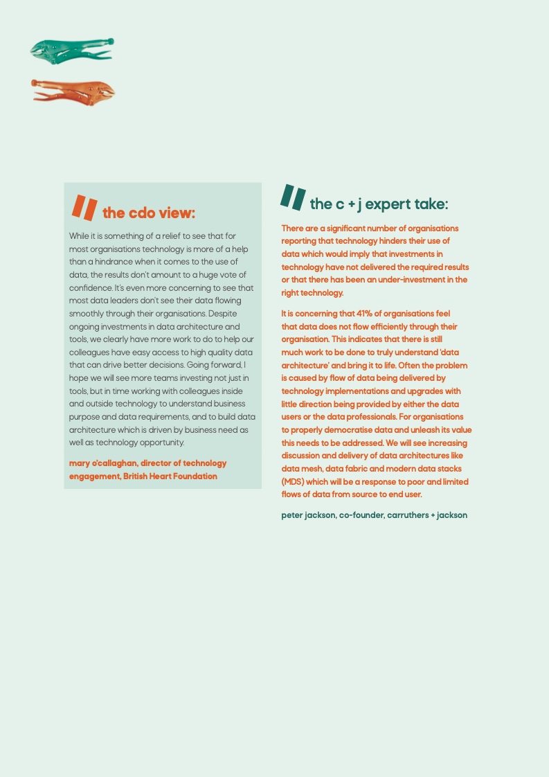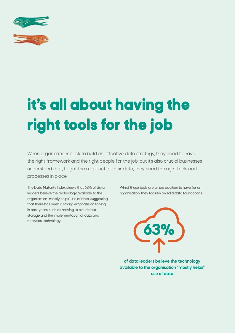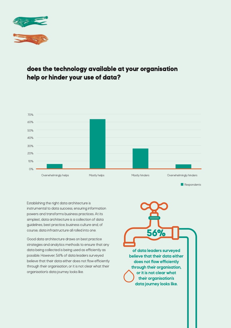 虽然人们正在为企业带来更不成熟的数据水平,但技术正在帮助他们迎头赶上。该指数表明,63%的数据领导者认为,企业可用的技术主要有助于他们使用数据。