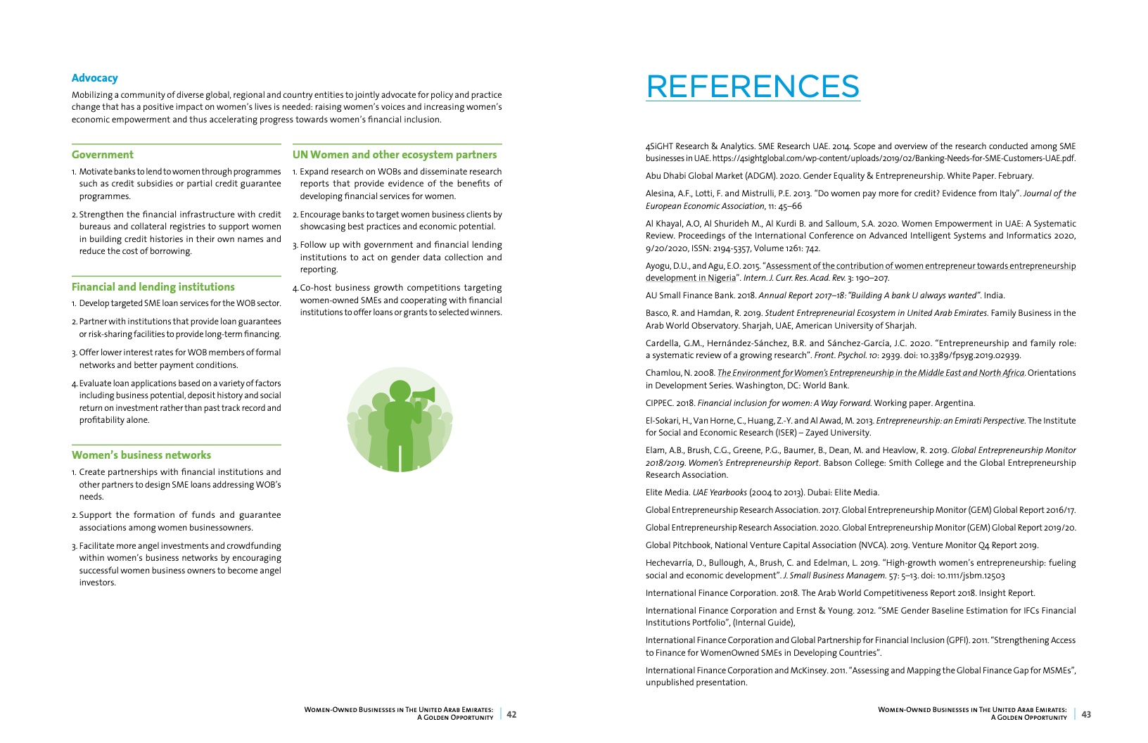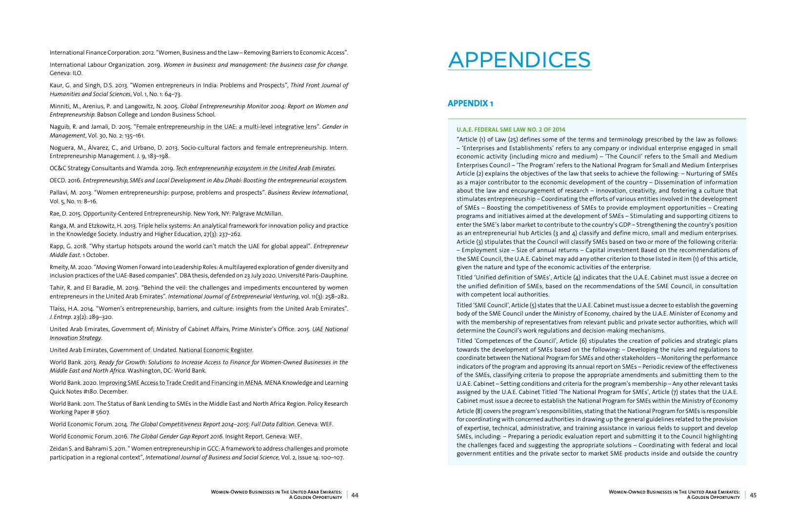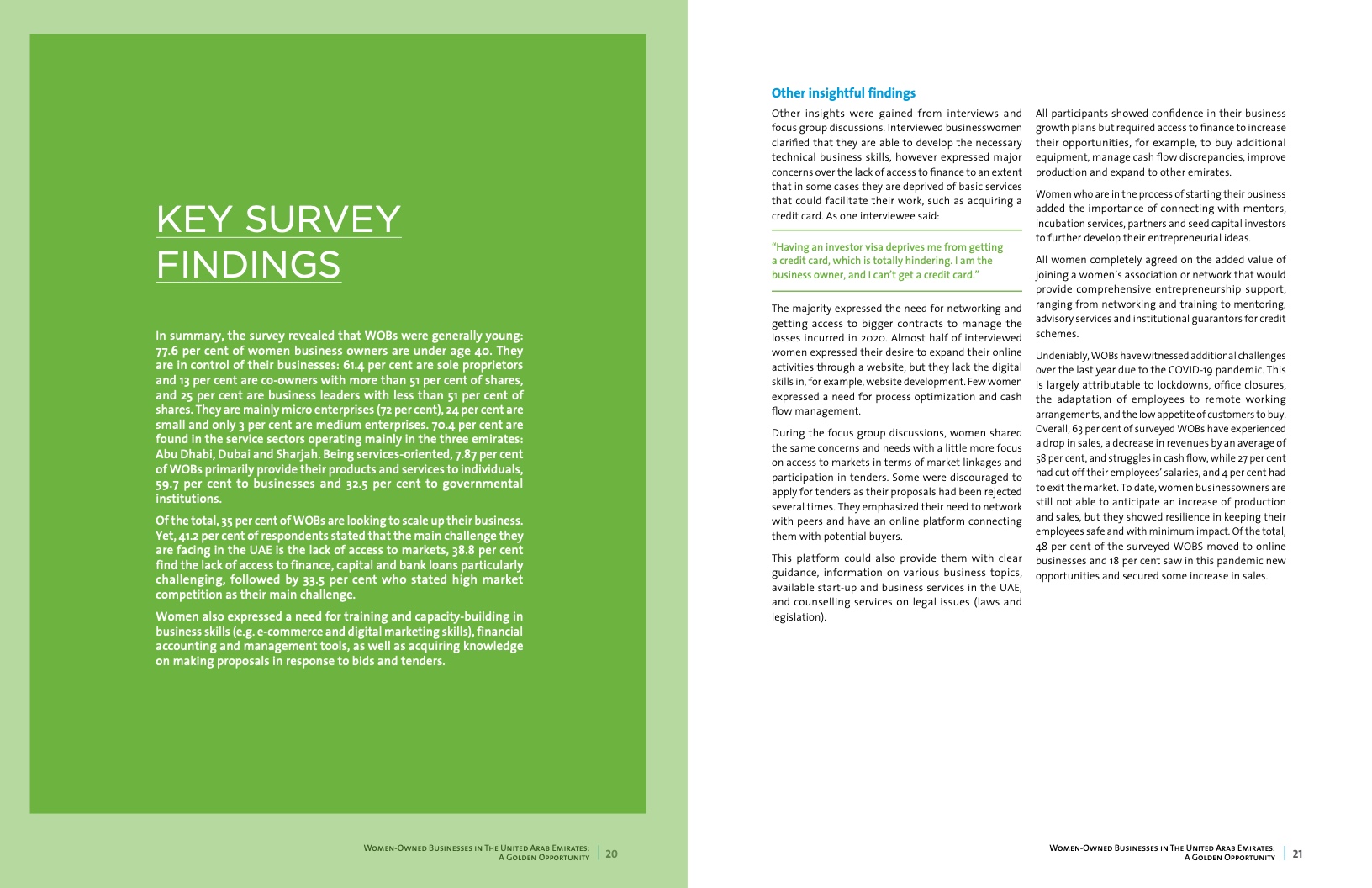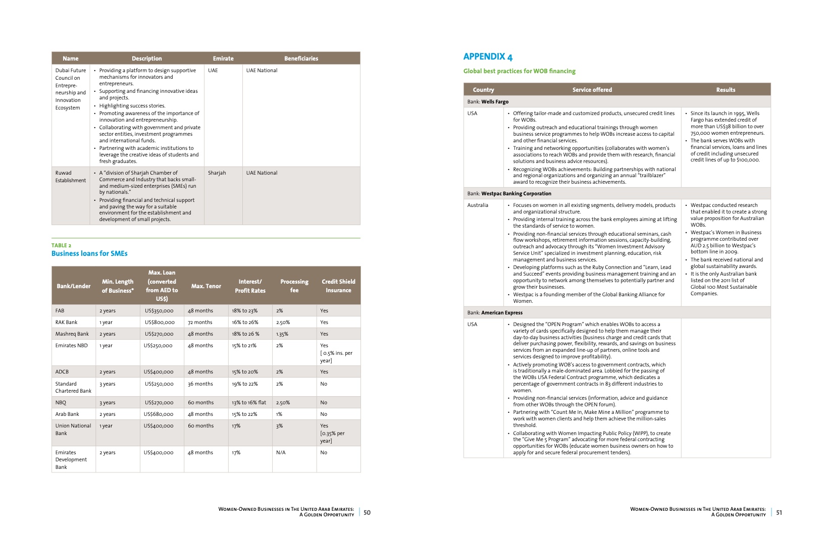 该报告还提供了关于中小型 WOBs的现实情况以及获得融资的可能性的全面资料,并就实现这些目标和推动企业发展提出了意见和建议,指出过去十年来,阿联酋通过一系列法律、政策和制度措施,在公共和私营部门确保两性平等方面取得了重大进展。