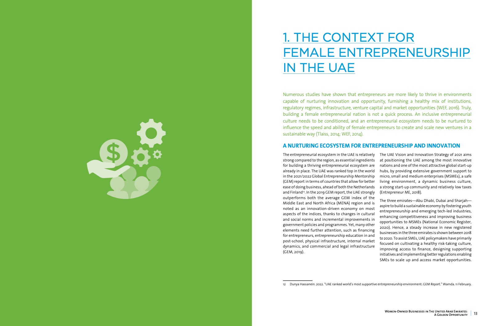 该报告赞扬了阿联酋的可持续和弹性创业生态系统,指出过去十年来,阿联酋通过一系列法律、政策和制度措施,包括简化融资渠道,在确保两性平等方面取得了很大进展。