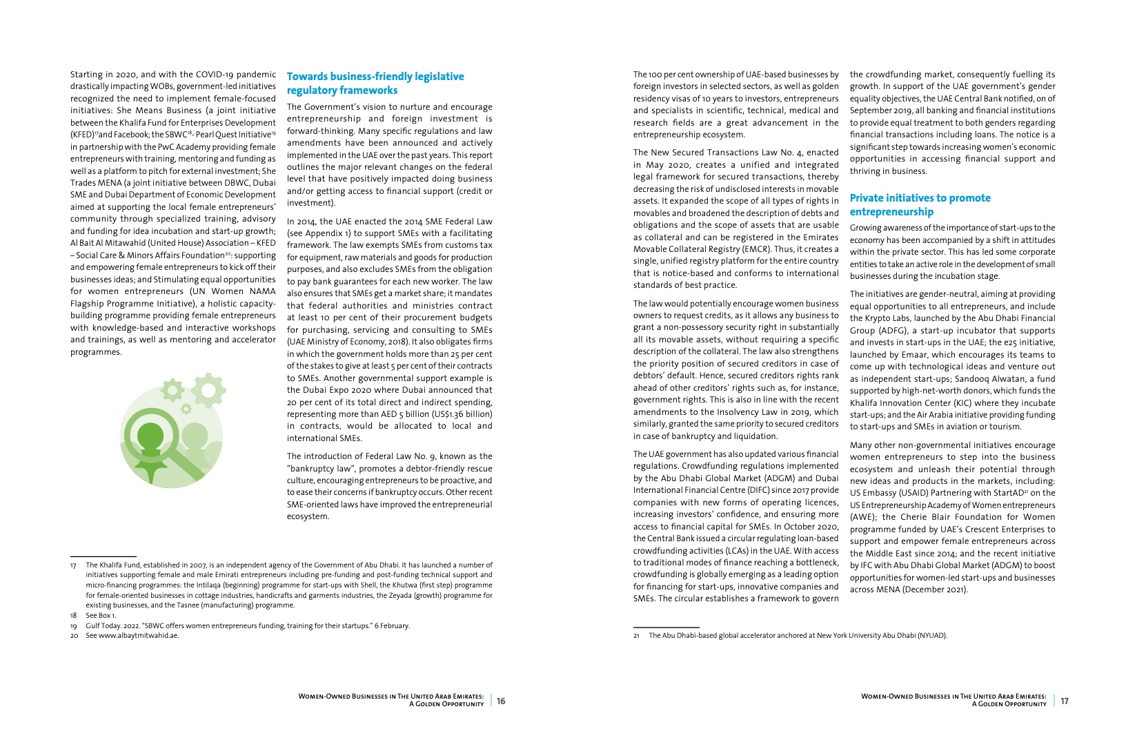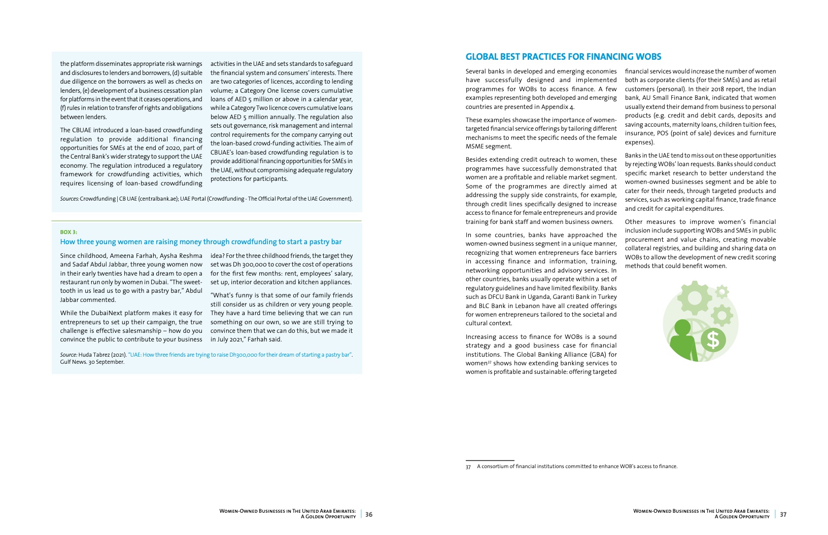 报告指出,该国女企业家委员会是国家商业立法的主要推动者,鼓励妇女通过微型企业创业。因此,阿联酋妇女和非阿联酋妇女得到了鼓励,她们开始创业的最低要求。