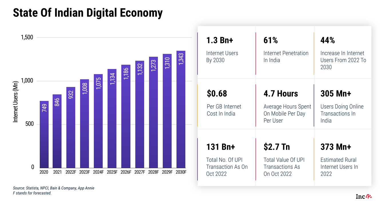 截至2030年,预计印度互联网用户数量将达到13亿,互联网覆盖率也将达到61%,2022年至2030年的互联网用户增长率将达到44%。与此同时,印度互联网用户日均在移动端花费的时间为4.7个小时,参与线上购物的消费者共有3.05亿。