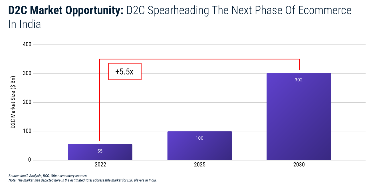 2022年,印度D2C市场规模为550亿美元,预计截至2030年,该市场规模将突破3千亿美元,进而进入下一个重要发展阶段。