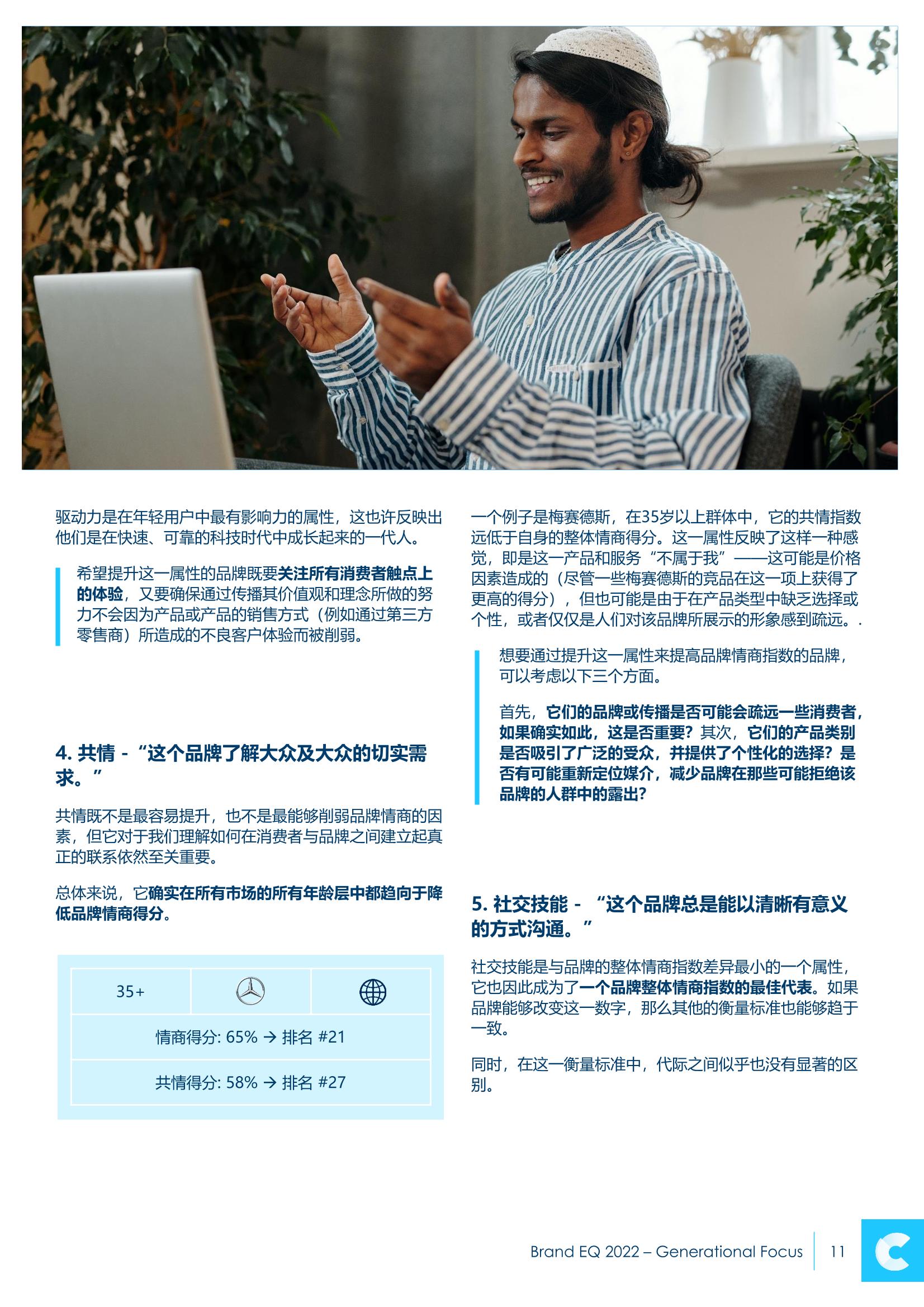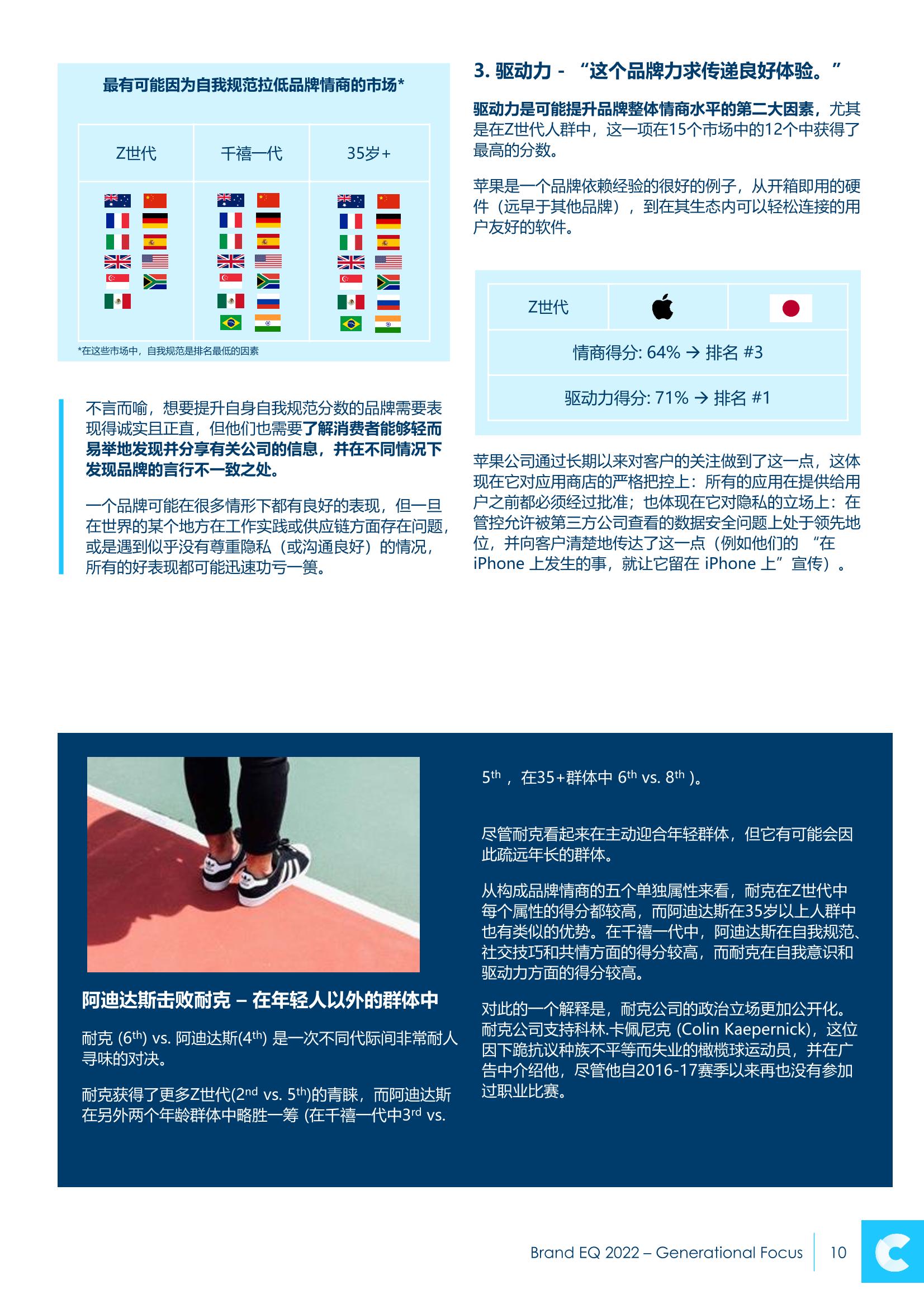 驱动力是提升品牌整体情商的第二大因素,这一项在 12个市场中获得了最高的分数。这一特质尤其受到 Z 世代人群的欢迎。