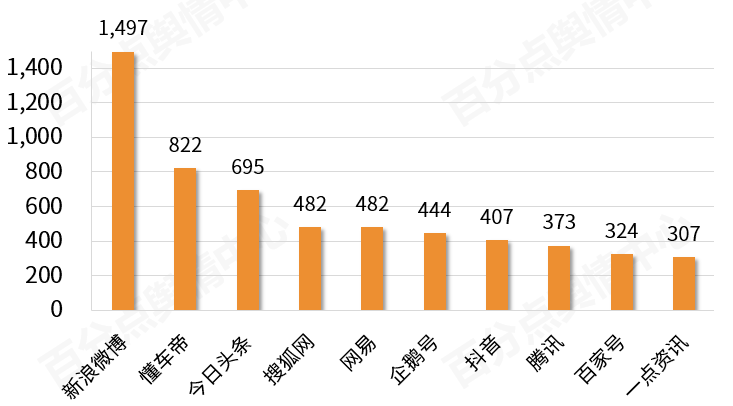 从媒体平台来看,新浪微博、懂车帝、今日头条等媒体平台的讨论度相对较高、较为集中。