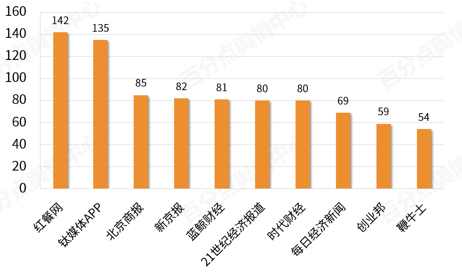 从主要内容作者来看,餐饮垂直网站、财经媒体等传播量较大。