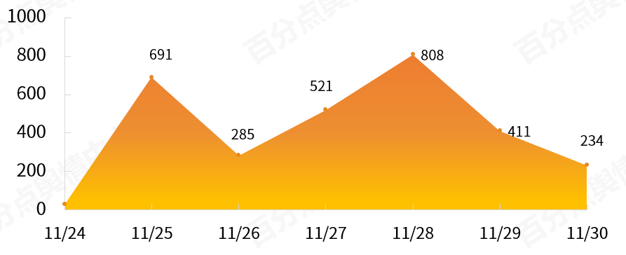 ▪ 11月4日,多家茶饮品牌取消外卖平台满减折扣,其中包括喜茶、奈雪的茶、茶百道、古茗、蜜雪冰城、一点点等。
