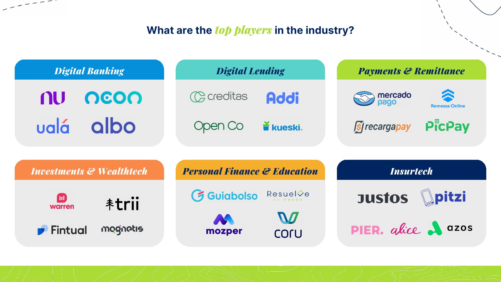该行业的增长将继续受到开放银行、向数字银行迁移、嵌入式金融、支付数字化、向高收益投资的转变、加密货币的采用、现有金融基础设施创新以及并购等趋势的推动。