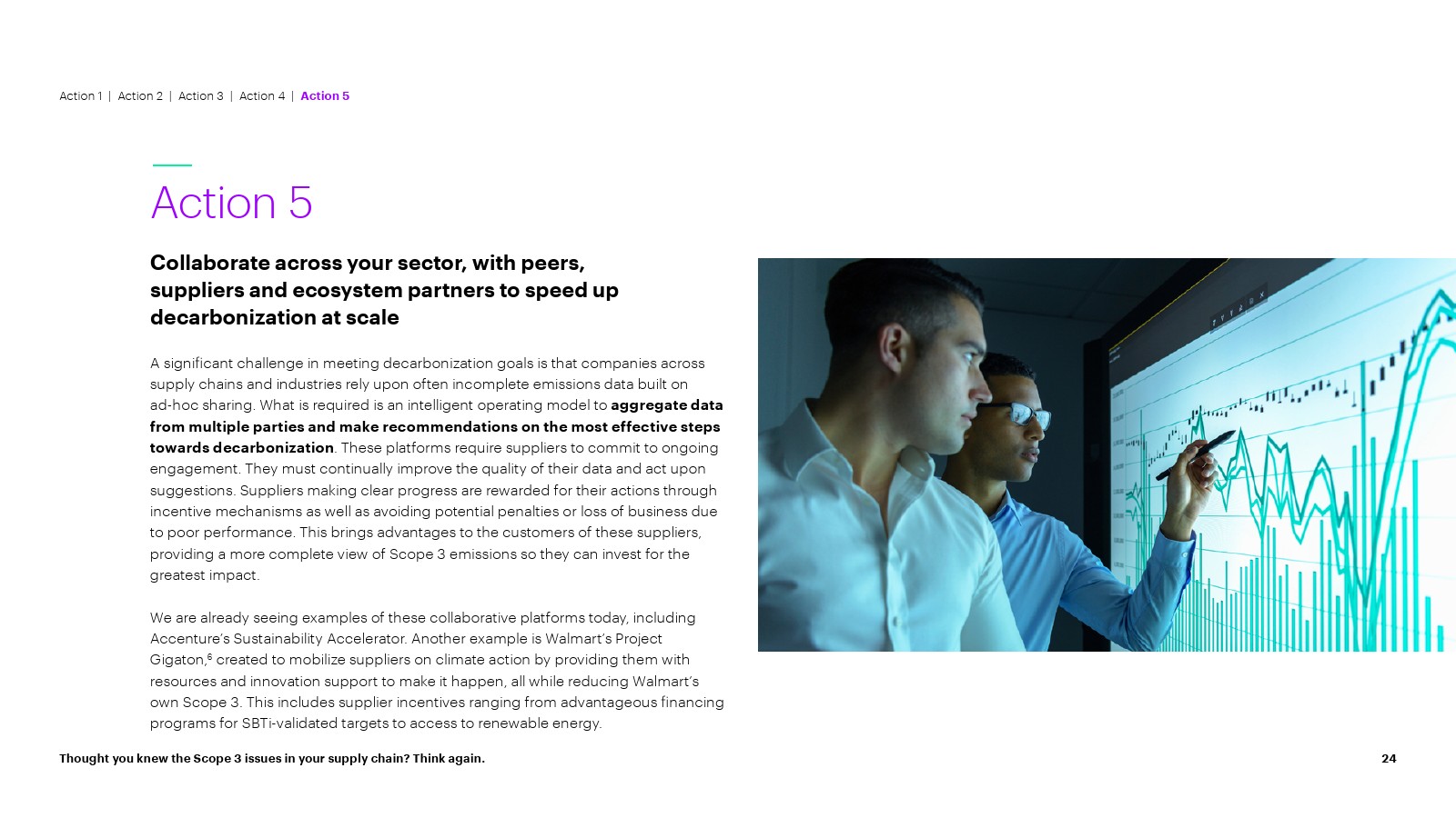 5、跨部门合作,与同行、供应商和生态系统合作伙伴合作,以加速大规模脱碳。聚合来自多方的数据并就最有效的脱碳步骤提出建议的智能平台解决方案至关重要。