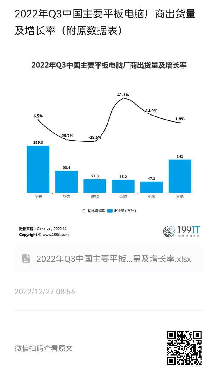 - 2022年Q4全球主要平板电脑厂商出货量及增长率(附原数据表)