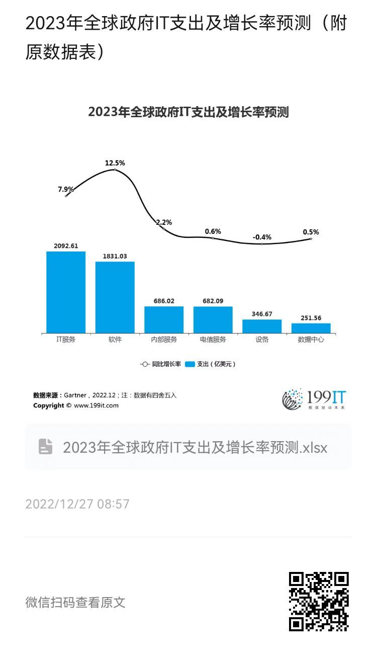 - 2023年全球政府IT支出及增长率预测(附原数据表)