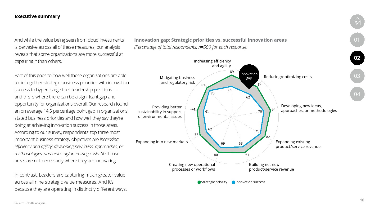 云压倒性地推动了积极成果,但战略、技术和创新差距仍然存在;