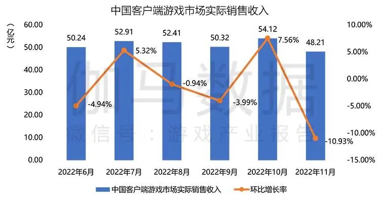 2022年11月客户端游戏市场规模:环比降幅较大 市场规模创近6个月新低