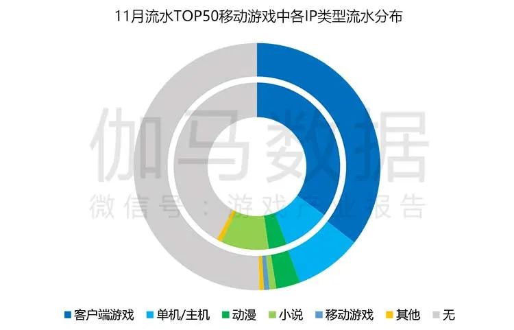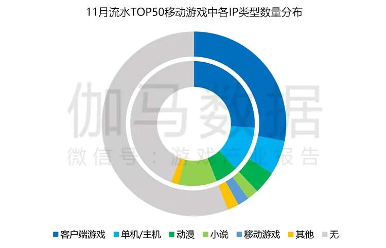 流水TOP50游戏IP分布:客户端游戏IP改编产品流水、数量份额增长新增移动游戏IP改编产品
