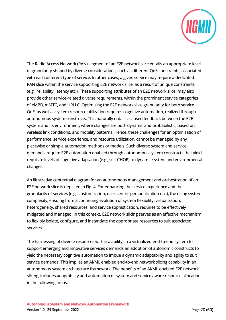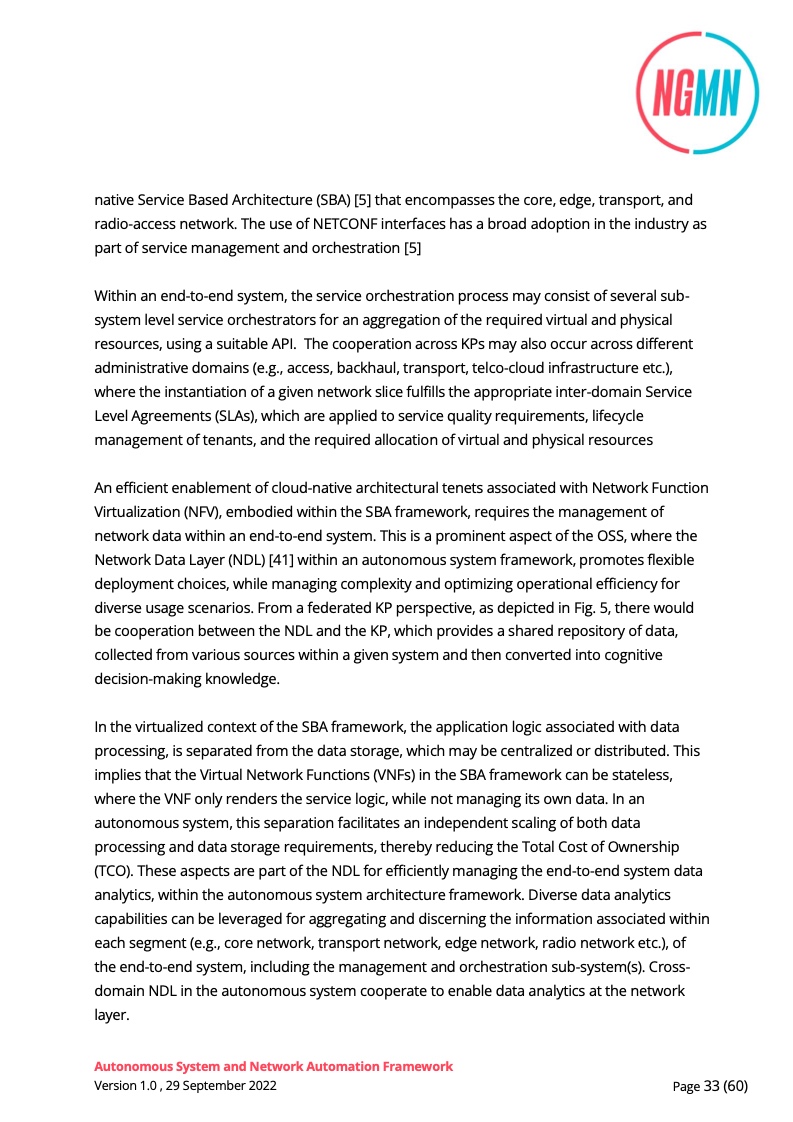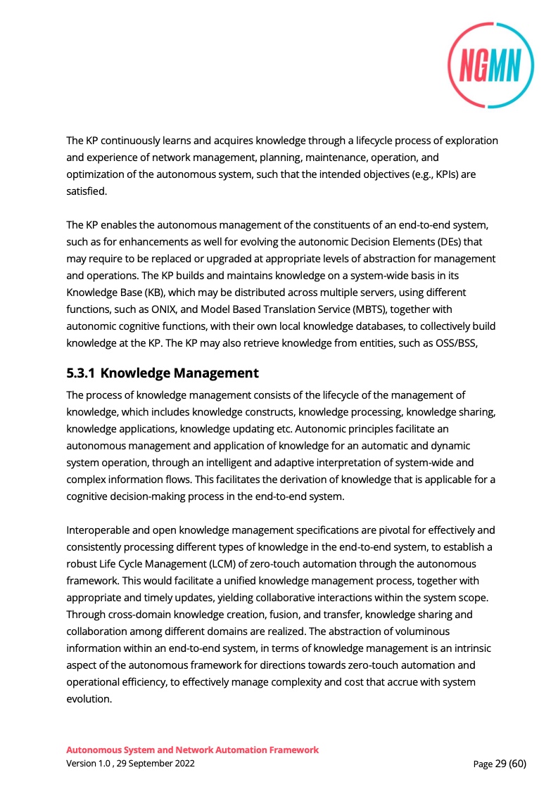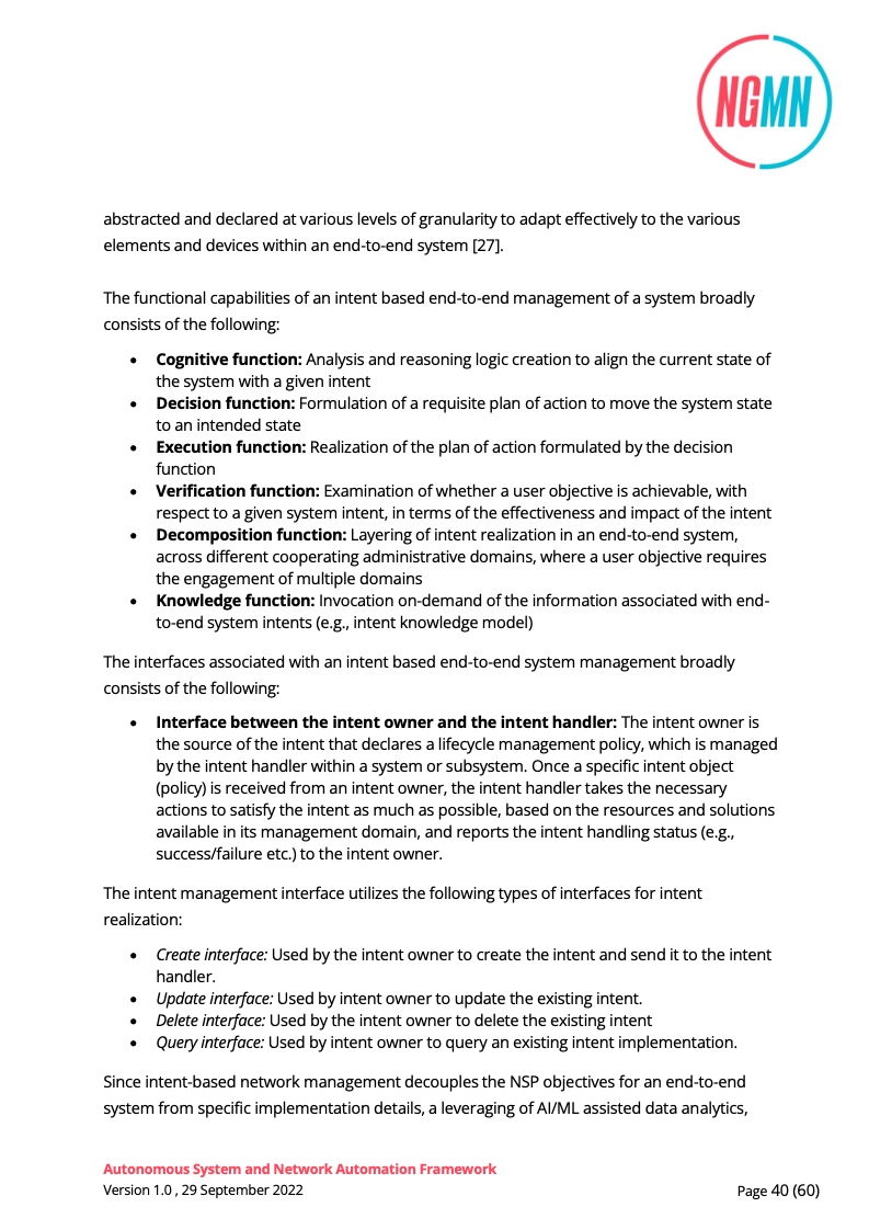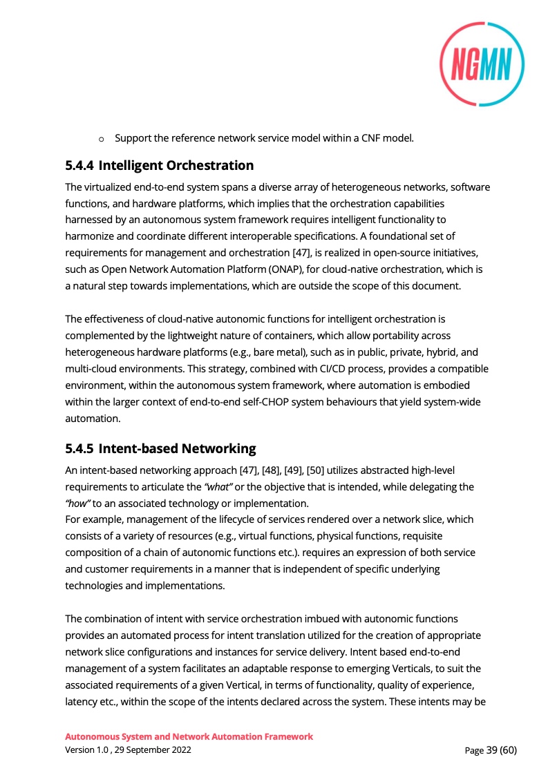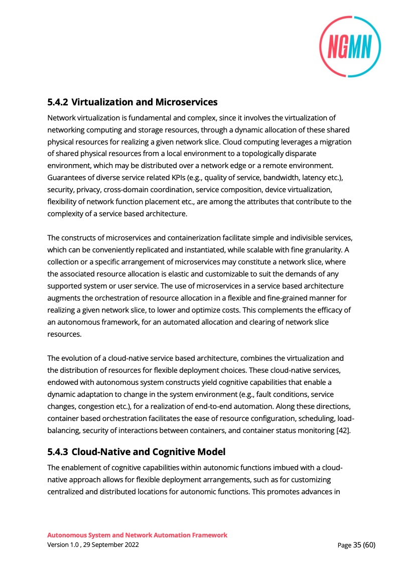 近日,中国移动研究院牵头,联合德国电信、UScellular、Orange、HUAWEI、HPE等十余家国际主流运营商与国际主流厂商在NGMN(Next Generation Mobile Networks Alliance, 下一代移动通信网络联盟)正式发布《自动化与自智系统架构》(Automation and Autonomous system Architecture Framework)白皮书,基于网络自动化现状与智能化平台扩展需求,提供自智网络平台实现参考架构与互通标准,为开源与标准等产业组织的工作规划提供建议。