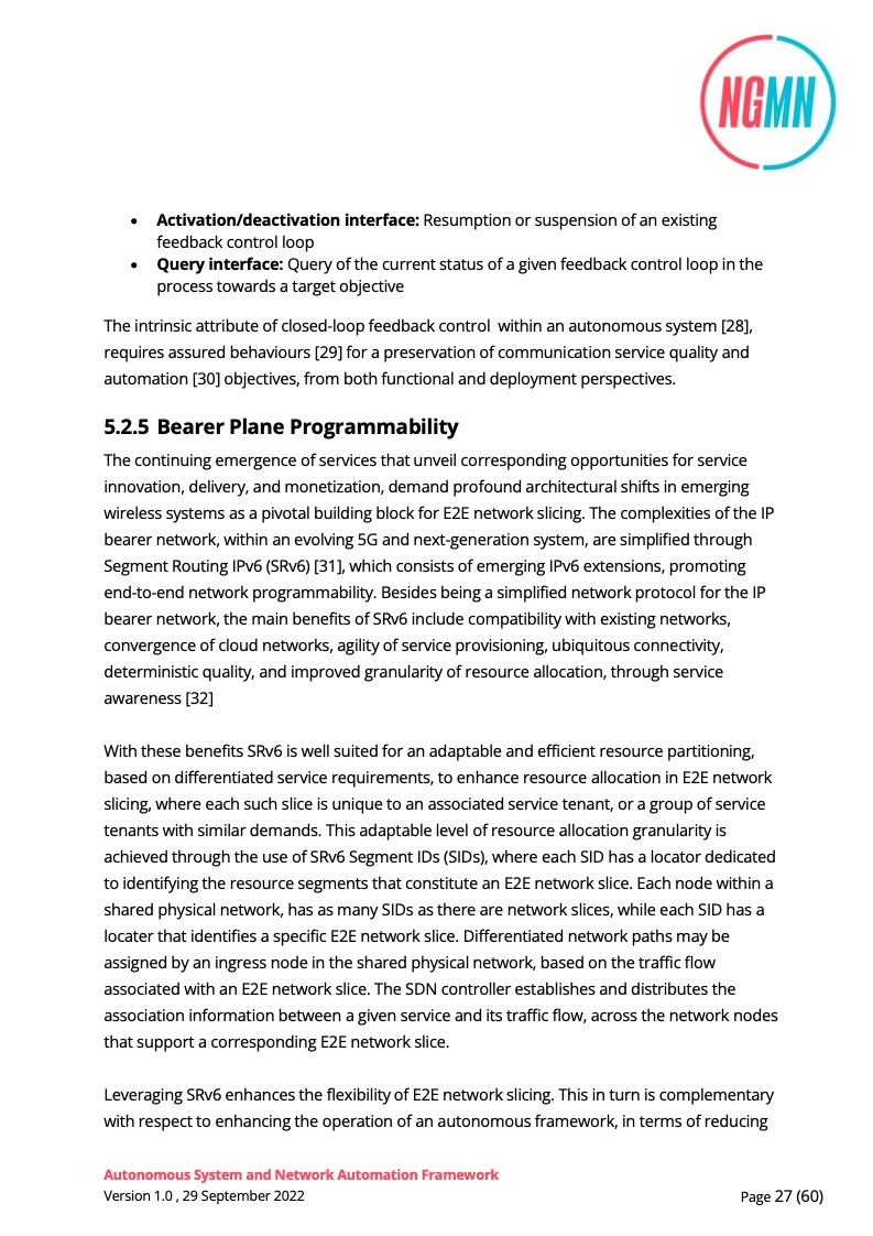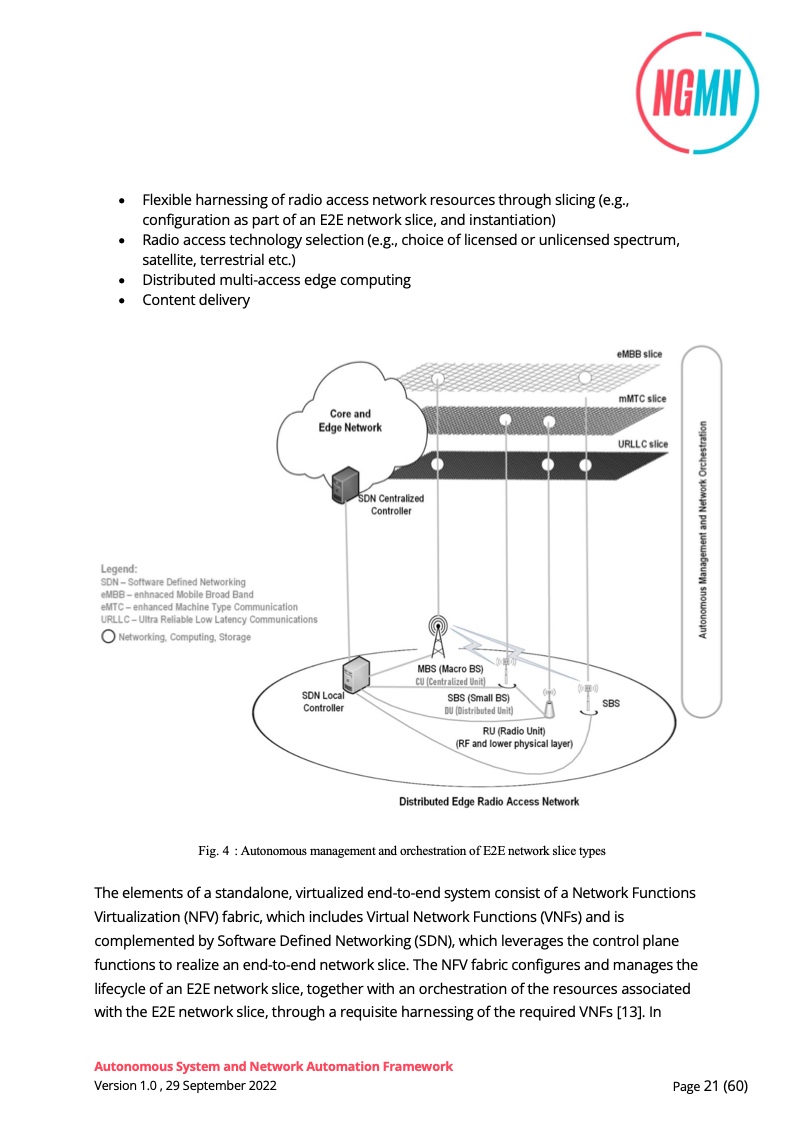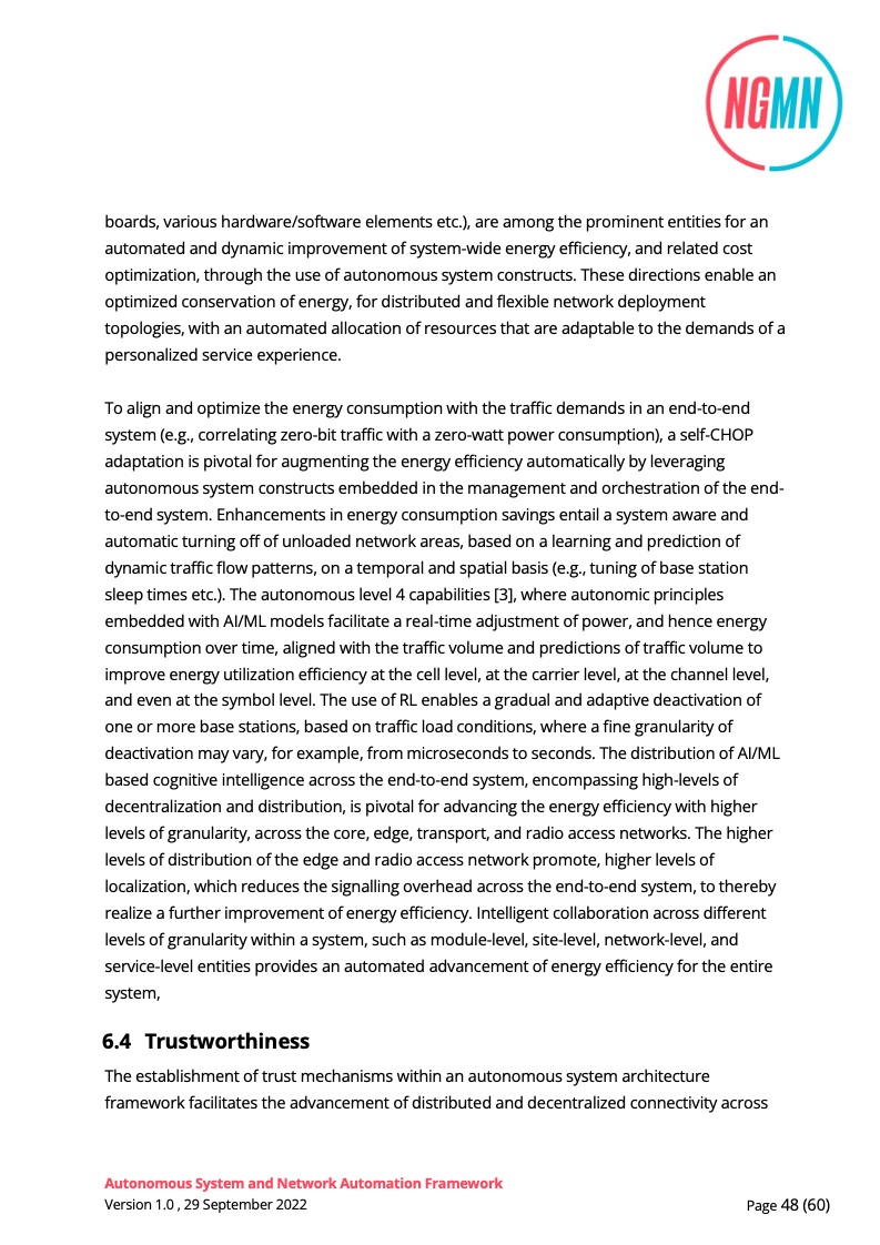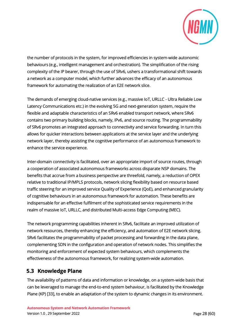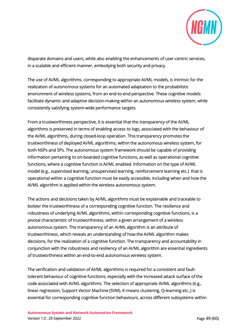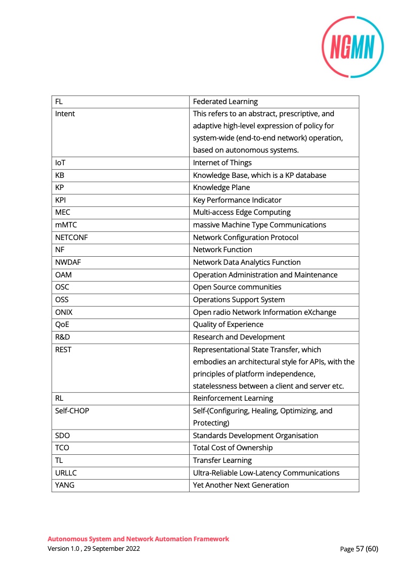 白皮书包括四部分内容:一是介绍了自智网络的总体概念与其商业效益;二是分析了自智网络系统参考架构,强调通过知识自动化来实现自智网络的编排与管理;三是介绍了自智网络系统中广泛使用的AI/ML算法模型与自智网络的服务场景;四是分析了目前产业潜在差距并给出NGMN的开源标准组织的协作现状及建议。