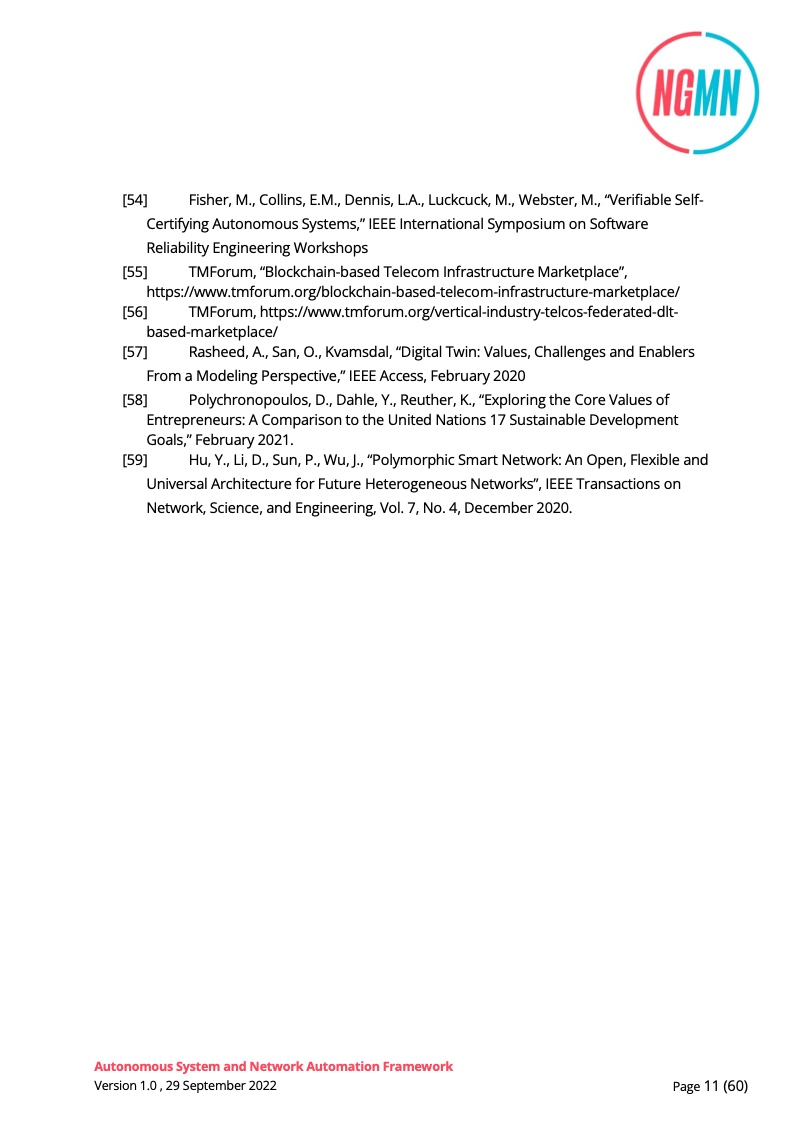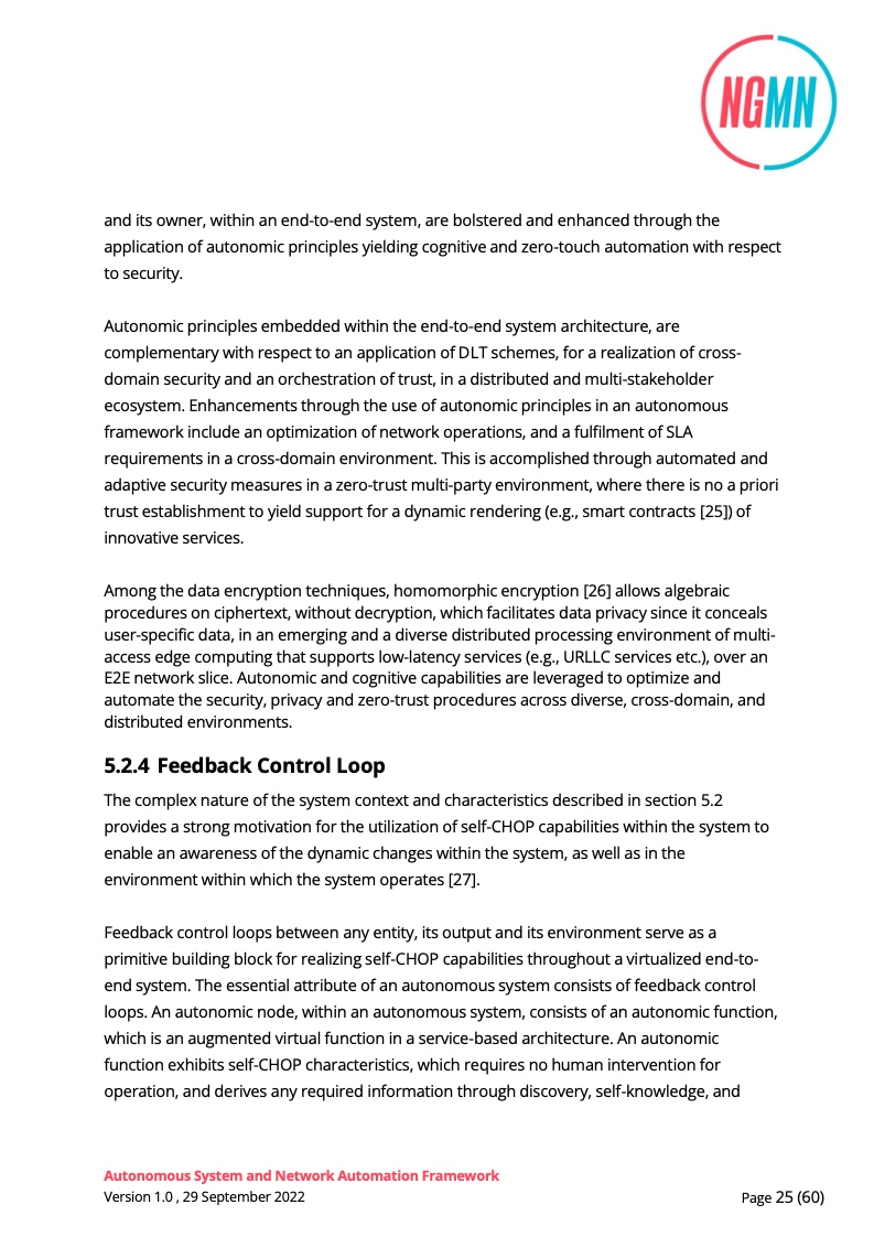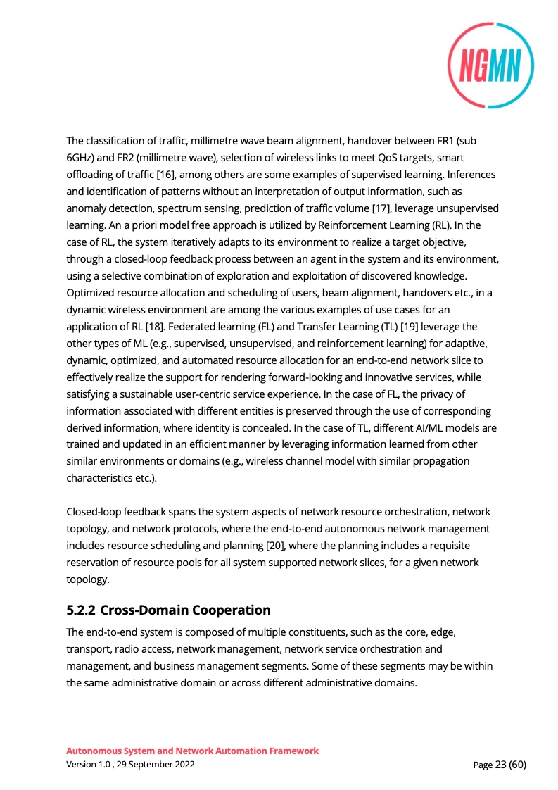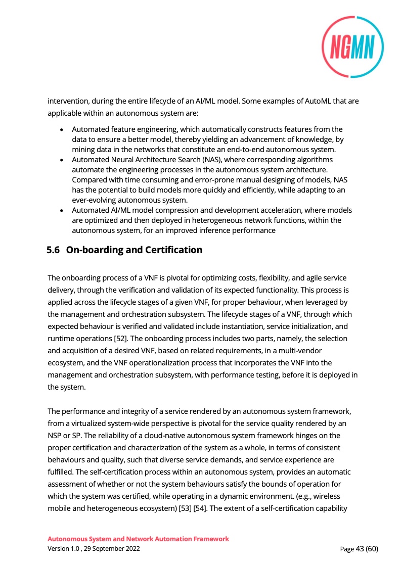 2021年针对运营商的自智网络数智化转型战略与挑战等,项目组在NGMN发布自智网络需求调研问卷与问卷调研研究报告。以此为基础,今年12月发布《自动化与自智系统架构》白皮书,旨在研究统一自智网络技术体系架构、进一步深化产业共识、加速AI注智自智网络建设。