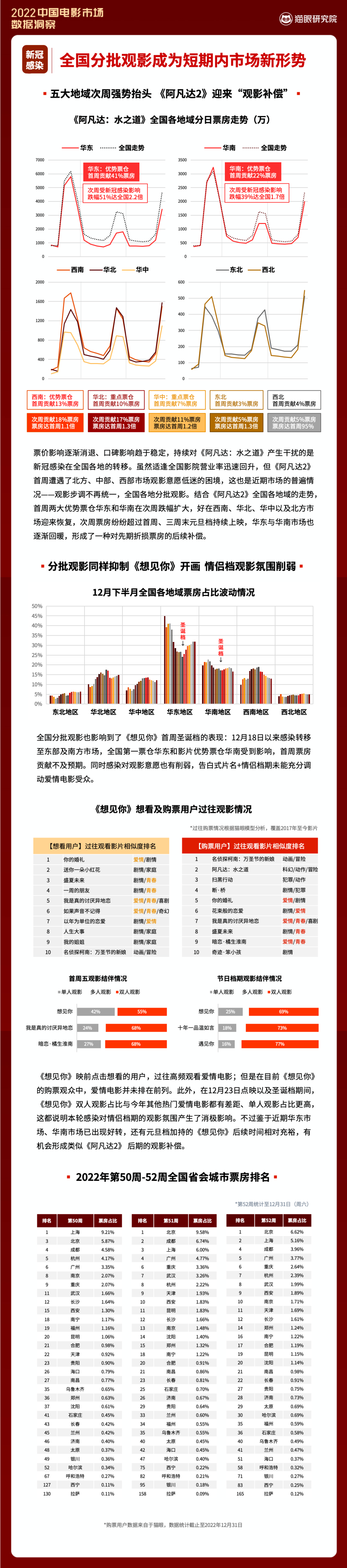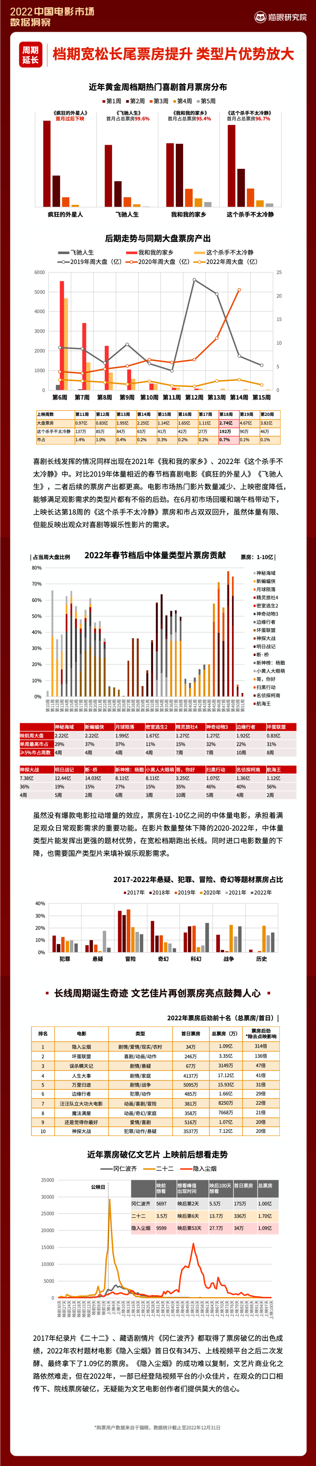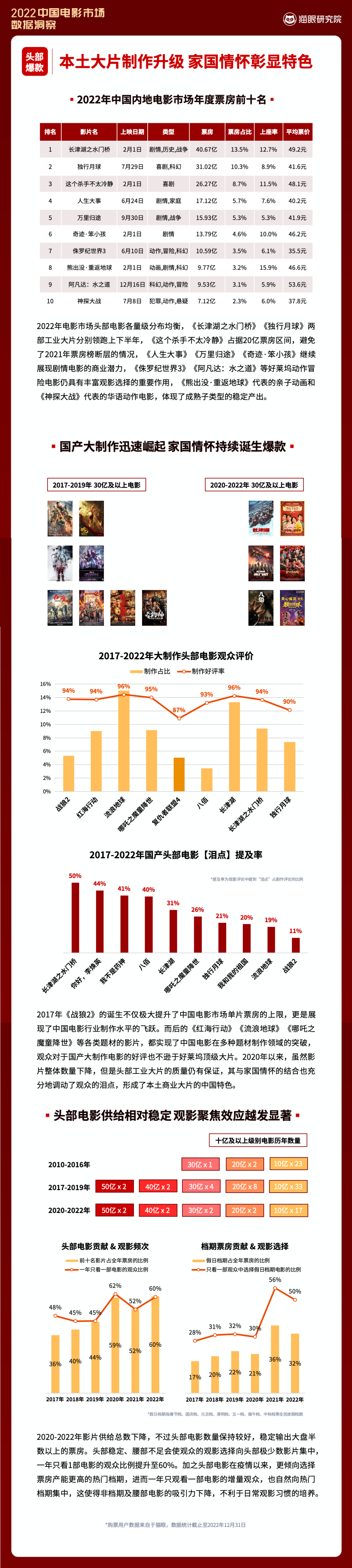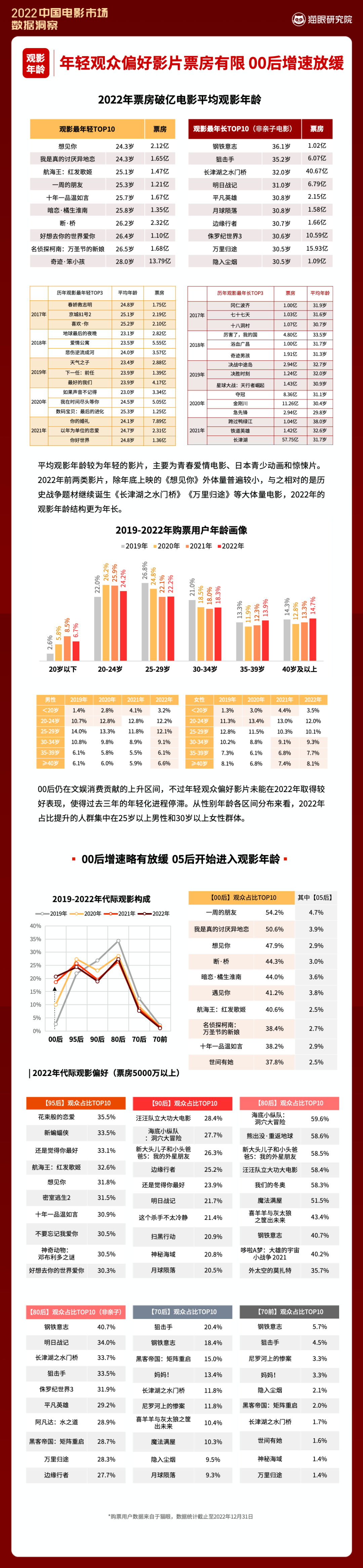 猫眼研究院:2022中国电影市场数据洞察 更多阅读:猫眼研究院:春节档新片总票房(含点映)破亿!猫眼研究院:2023年度票房破250亿猫眼研究院:2021年度电影票房榜–TOP10国产电影占据8部猫眼研究院:2022国庆档总票房14.9亿猫眼研究院:2022年中秋节票房破1.4亿猫眼研究院:2023年五一档数据洞察猫眼研究院:2022年短剧热度榜猫眼研究院:2022国庆档数据洞察猫眼研究院:《阿凡达2》进入2022全球票房榜第10位猫眼研究院:2022年贺岁档票房破6亿猫眼研究院:2023端午档总票房8.92亿猫眼研究院:2022贺岁档总票房破10亿猫眼研究院:2023年5月猫眼「电视剧」热度榜猫眼研究院:2023年2月总票房破30亿猫眼研究院:2023年5月总票房破30亿
