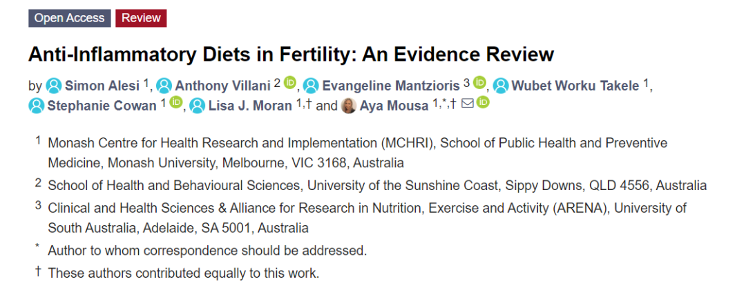 1Alesi, S. et al. Anti-Inflammatory Diets in Fertility: An Evidence Review. Nutrients 14, doi:10.3390/nu14193914 (2022).