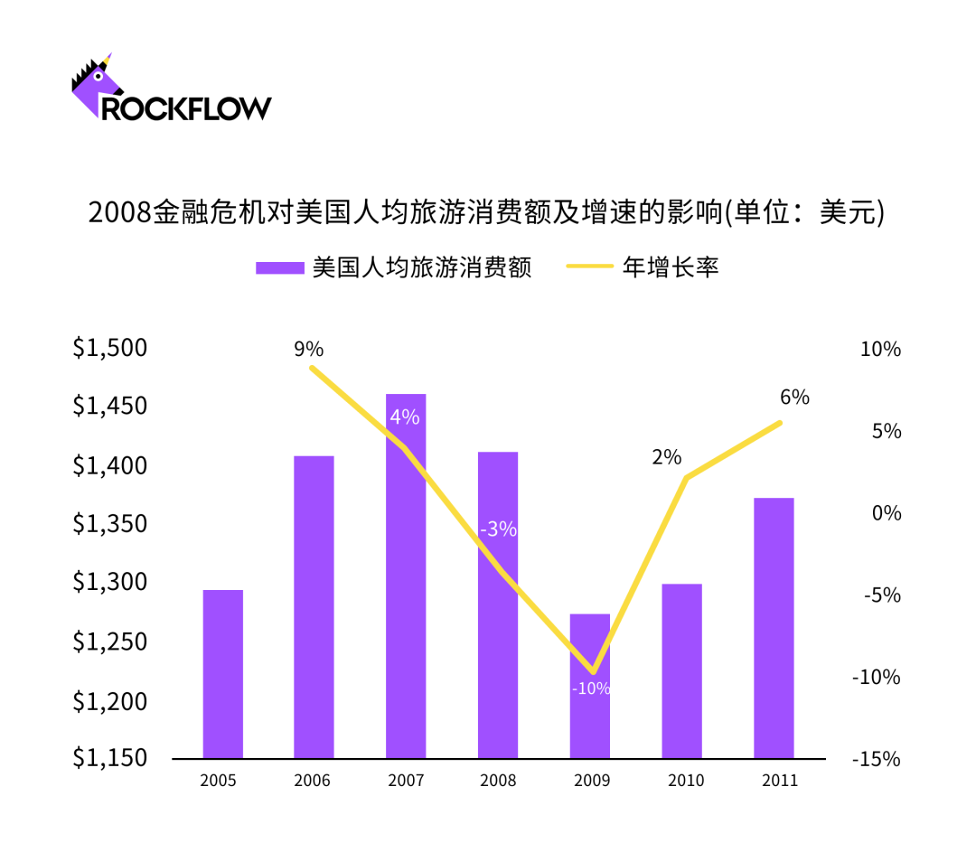 然而2023年因为加息,美国很可能会出现衰退现象。美国可支配收入预测将有可能在2023年有0-2%的下跌。根据强相关性,在经济衰退的情况下,作为可选消费的旅行支出会减少。参考2008年金融危机期间的数据,衰退第一年,即2008年,旅行支出同比下降3%,第二年下降10%。