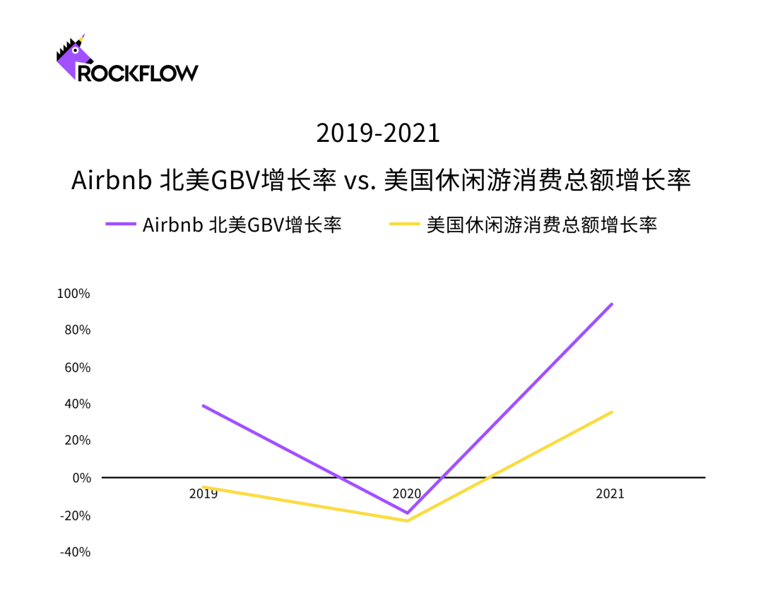 Airbnb疫情期间表现:增速远高于整个休闲游市场,市场份额大幅提高。