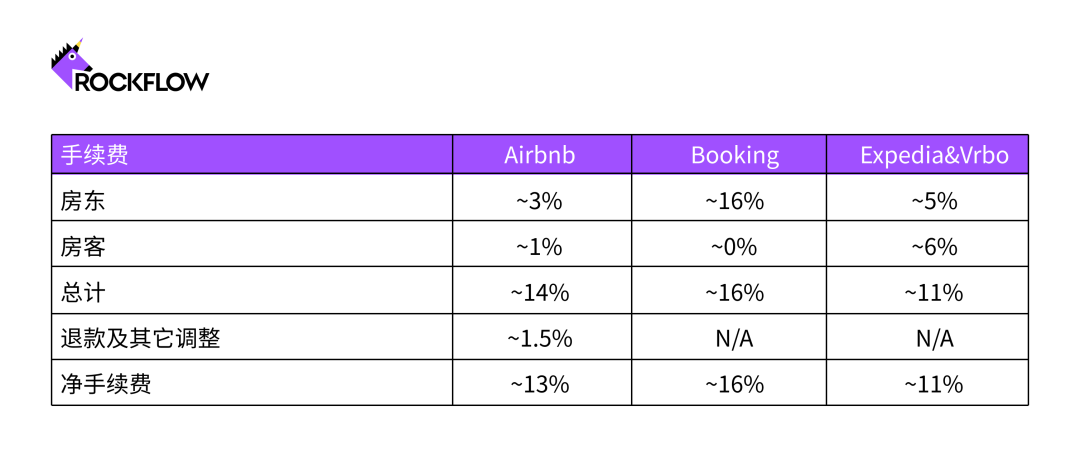 Airbnb竞争优势三:有空间提高手续费,营收可进一步增加。