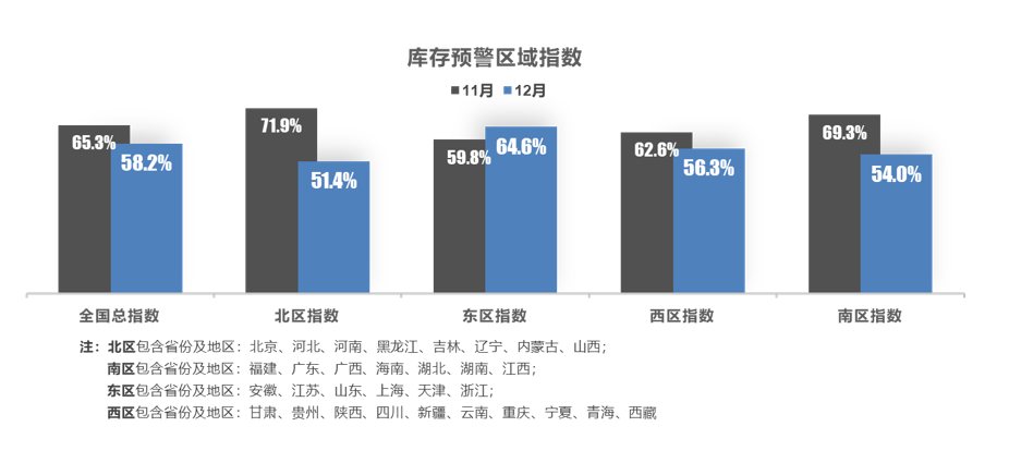 从区域指数情况看:12月全国总指数为58.2%,北区指数为51.4%,东区指数为64.6%,西区指数为56.3%,南区指数为54.0%。北京、河北、四川等汽车消费大省,在12月上旬疫情感染达峰,中旬开始汽车消费率先恢复。
