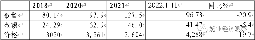 Table 1‑1中国乳制品进口情况2022.1-11