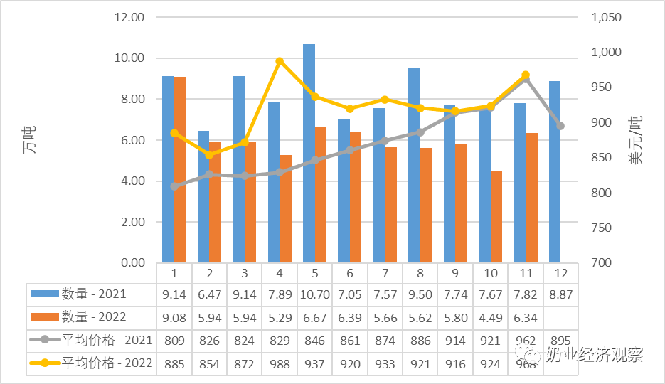 单位:万吨、亿美元、美元/吨、%