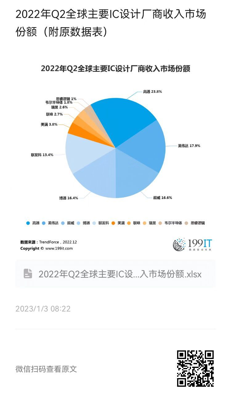 - 2022年Q3全球主要IC设计厂商收入市场份额(附原数据表)