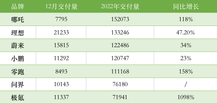 哪吒以超出第二名近两万辆的成绩,成为2022年新造车交付量第一。榜单中多了问界,消失了威马。